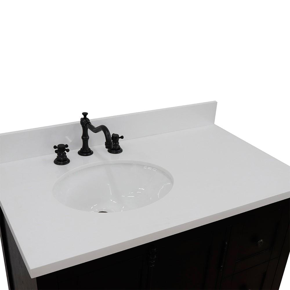 BellaTerra 37" Single vanity in Brown Ash finish with White quartz top and oval sink - Left doors/Left sink 400100-37L-BA-WEO