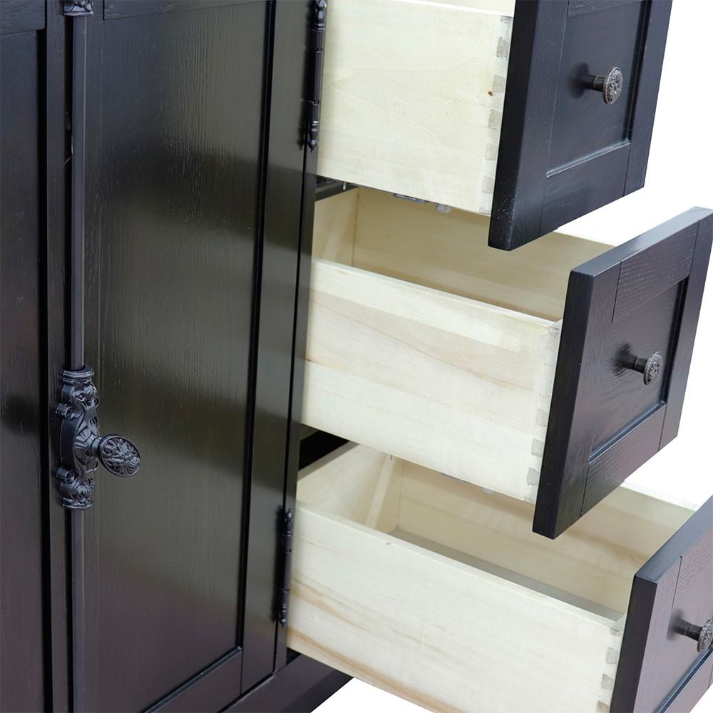 The Plantation collection by Bellaterra Home features Plantation Style bathroom vanities that can accomplish any home design. From the cottage to the cabin or to the grand home design, you will appreciate this beautifully hand crafted piece of furniture as the focal point in your bathroom. The Plantation style wrought iron finish hardware enhances the unique look of this piece of art. The vanity is made with solid oak and plywood, topped with ash veneer to give the texture. It is hand applied with multiple layers of ecofriendly stain and top coat to prevent pealing, cracking and fading. The interior finish is consistent throughout and matches the exterior finish. The structure of the cabinet is built with solid oak and has full corner block on all corners for stability and to also provide additional support for the counter top. It has one interior adjustable shelf for storage and a big opening for plumbing installation. This collection offers a variety of finishes. Each cabinet is configured to work with our variety of countertops or any standard sized tops. This vanity is available in: Brown Ash (Dark brown), Glacier Ash (White), Gray Ash (Light gray). This vanity has multiple top choices (sold separately).