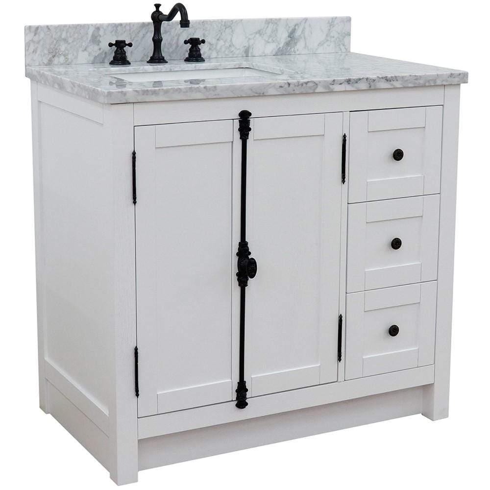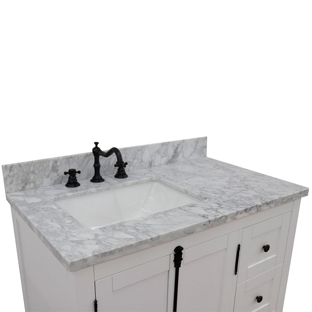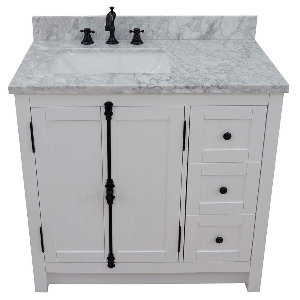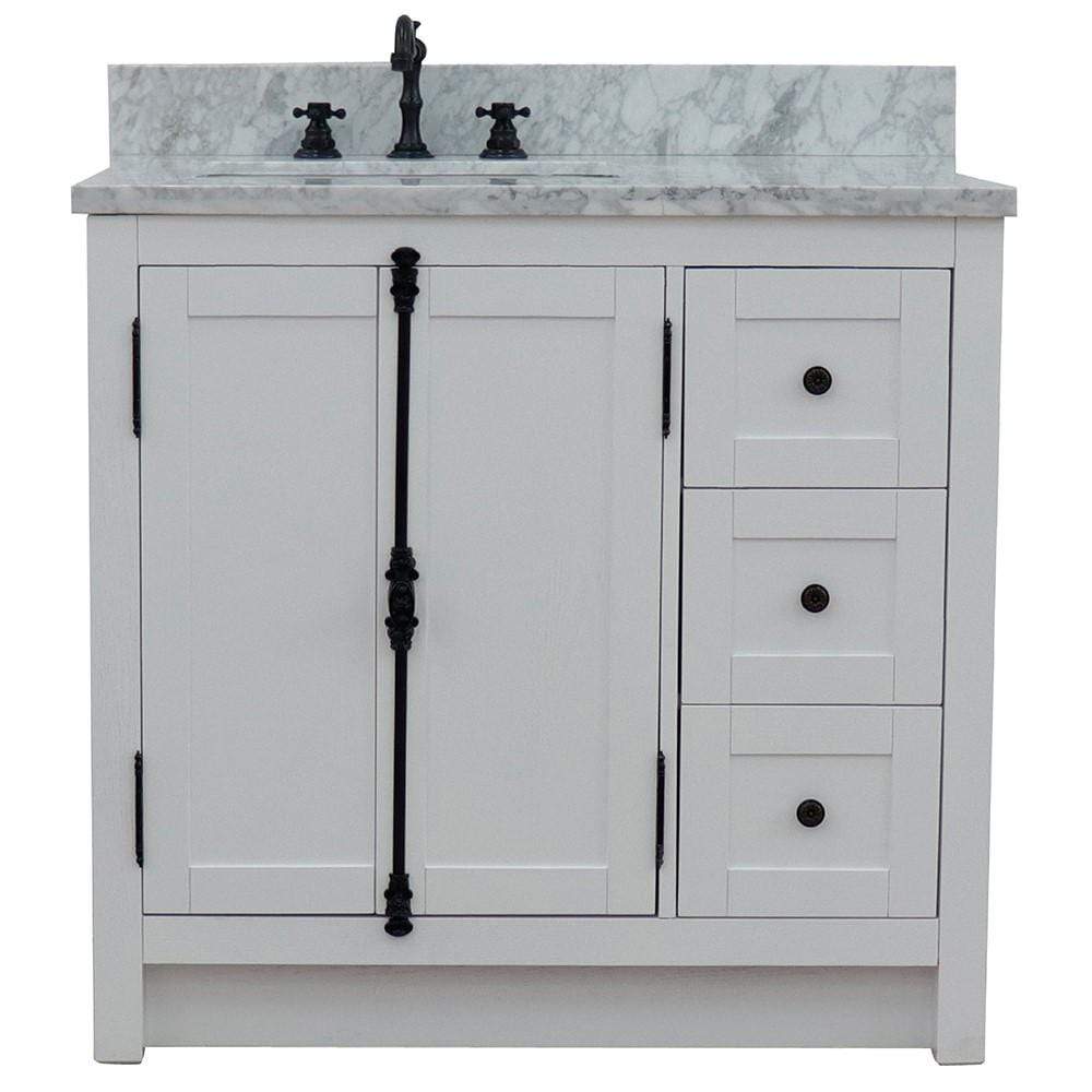 BellaTerra Home 37" Single vanity in Glacier Ash finish finish with White Carrara top and rectangle sink - Left doors/Left sink 400100-37L-GA-WMR