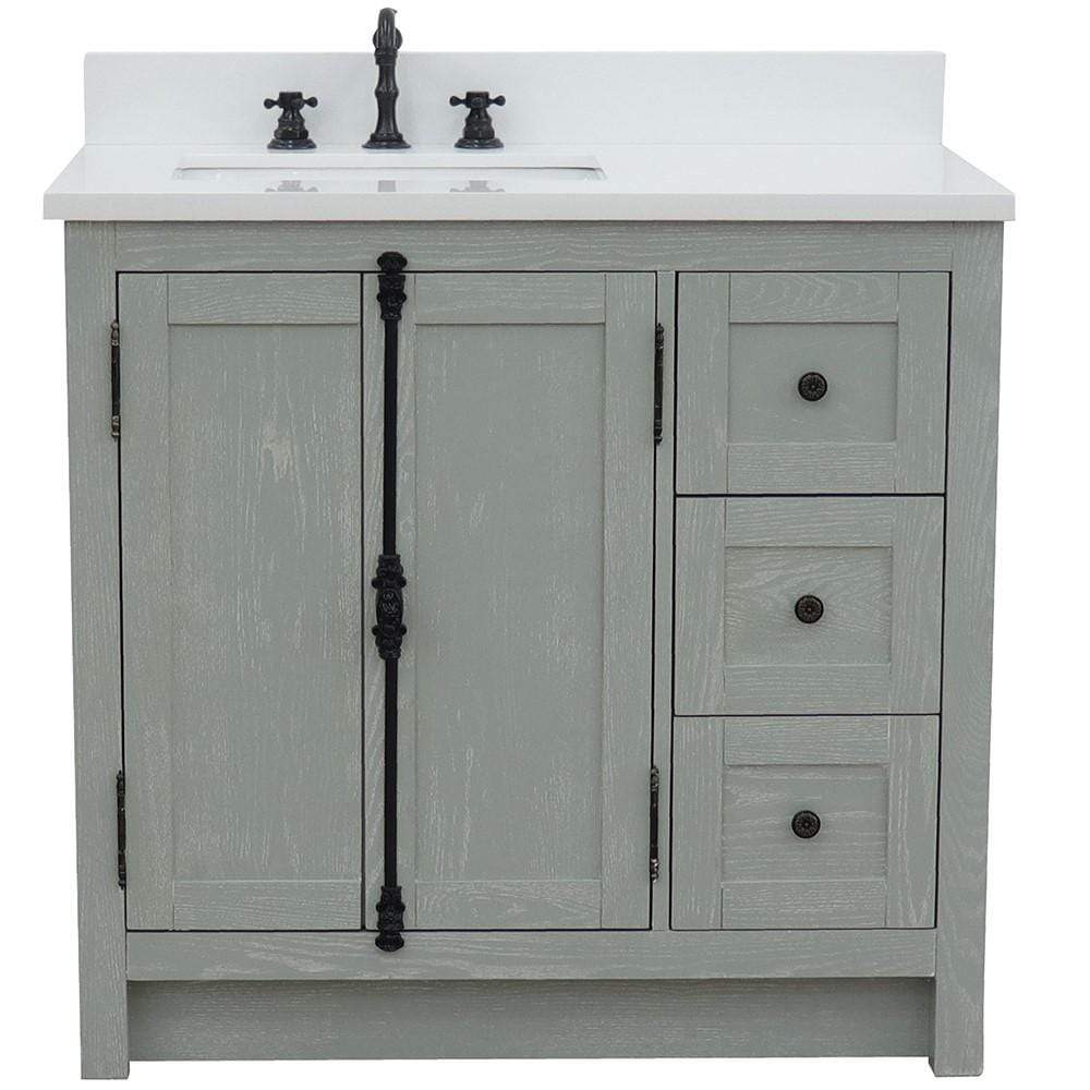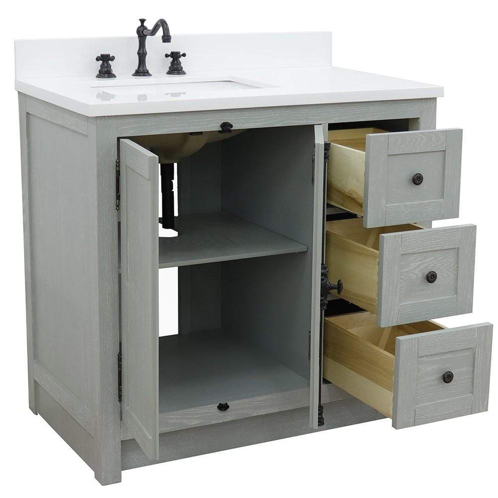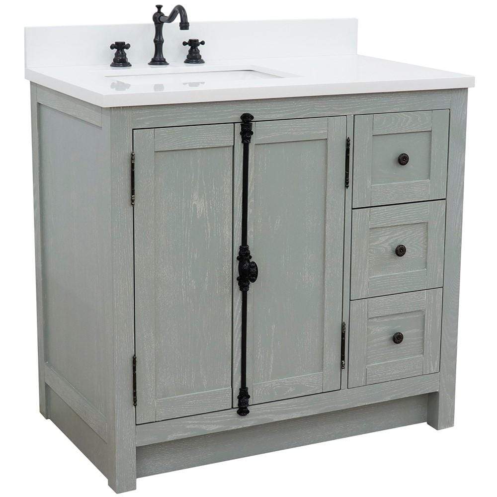 BellaTerra Home 37" Single vanity in Gray Ash finish with White quartz top and rectangle sink - Left doors/Left sink 400100-37L-GYA-WER