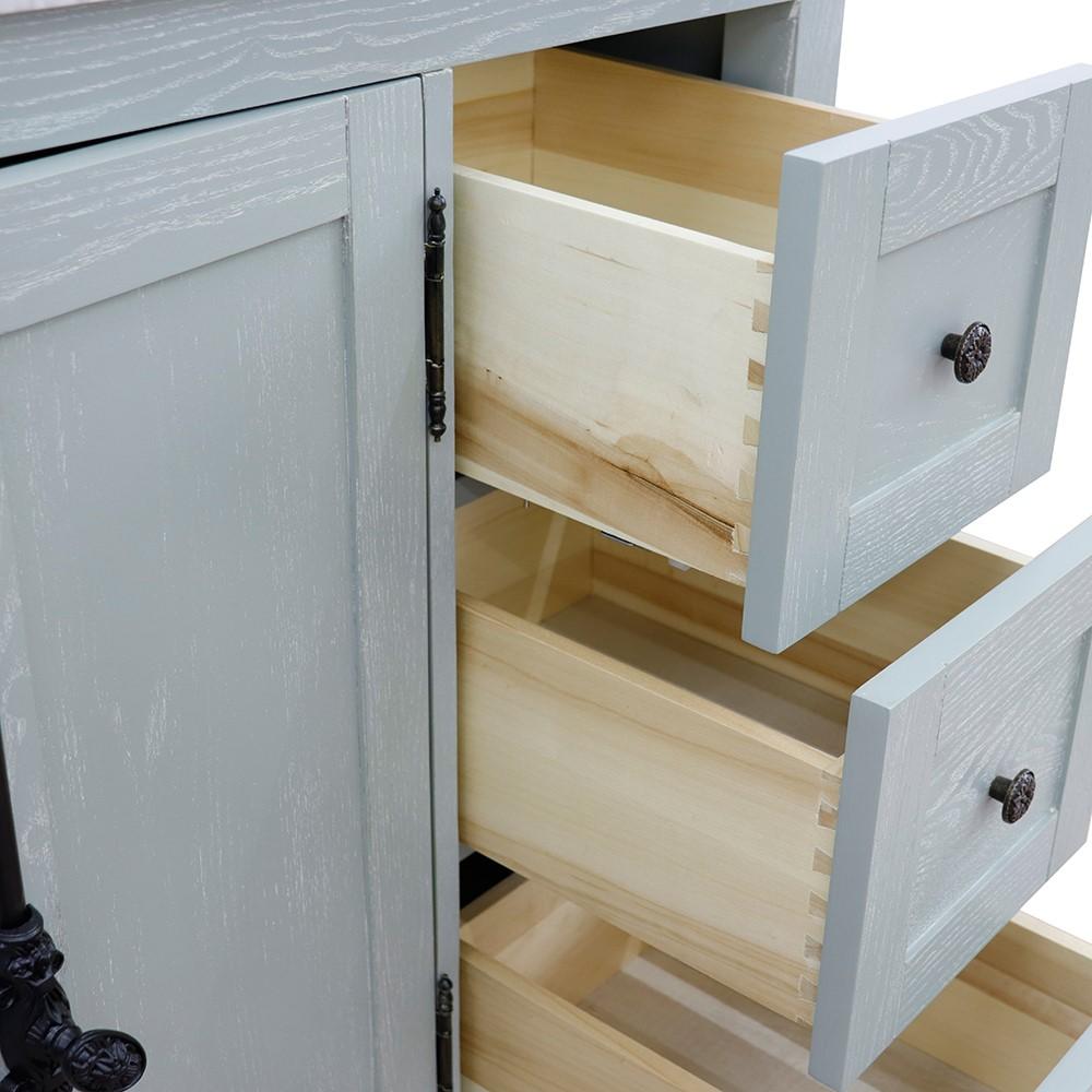 The Plantation collection by Bellaterra Home features Plantation Style bathroom vanities that can accomplish any home design. From the cottage to the cabin or to the grand home design, you will appreciate this beautifully hand crafted piece of furniture as the focal point in your bathroom. The Plantation style wrought iron finish hardware enhances the unique look of this piece of art. The vanity is made with solid oak and plywood, topped with ash veneer to give the texture. It is hand applied with multiple layers of ecofriendly stain and top coat to prevent pealing, cracking and fading. The interior finish is consistent throughout and matches the exterior finish. The structure of the cabinet is built with solid oak and has full corner block on all corners for stability and to also provide additional support for the counter top. It has one interior adjustable shelf for storage and a big opening for plumbing installation. This collection offers a variety of finishes. Each cabinet is configured to work with our variety of countertops or any standard sized tops. This vanity is available in: Brown Ash (Dark brown), Glacier Ash (White), Gray Ash (Light gray).This elegant bathroom vanity top features a 1.3” thick White Carrara Marble preinstalled with a white undermount cUPC certified oval ceramic sink and a matching 4 in. H. backsplash is availalbe for purchase to complete the utmost beauty and functionality. It will easily match many home interiors. The vanity top is pre-drilled with 3 holes for 8” widespread faucet and fits directly on top of a standard vanity cabinet (sold separately). Bellaterra Home’s counter tops are pre-sealed and polished for added protection. All genuine stone material has its variation of veining pattern and color; every top will be slightly different.