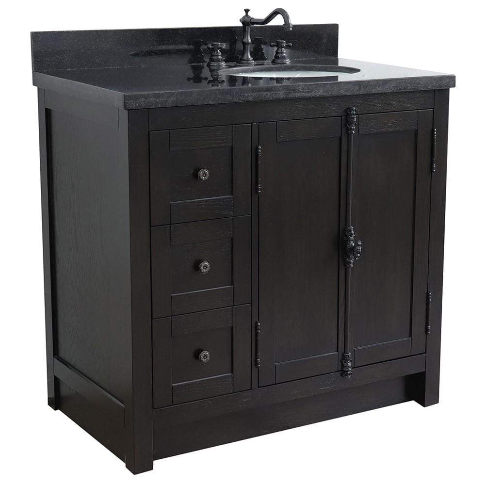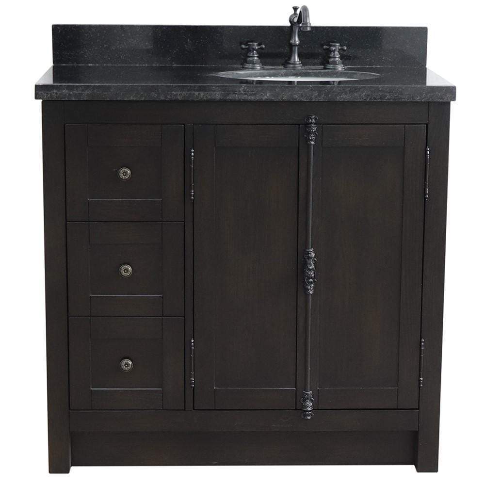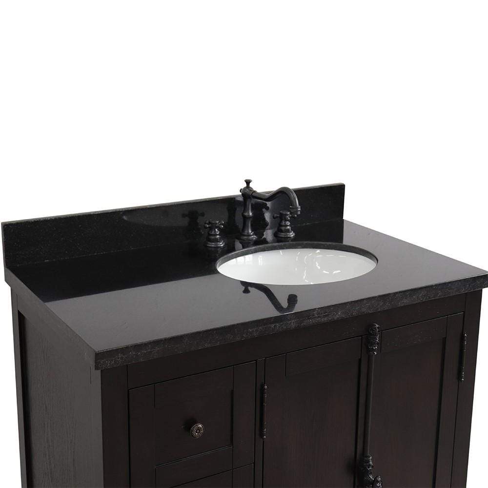 BellaTerra Home 37" Single vanity in Brown Ash finish with Black galaxy top and oval sink - Right doors/Right sink 400100-37R-BA-BGO