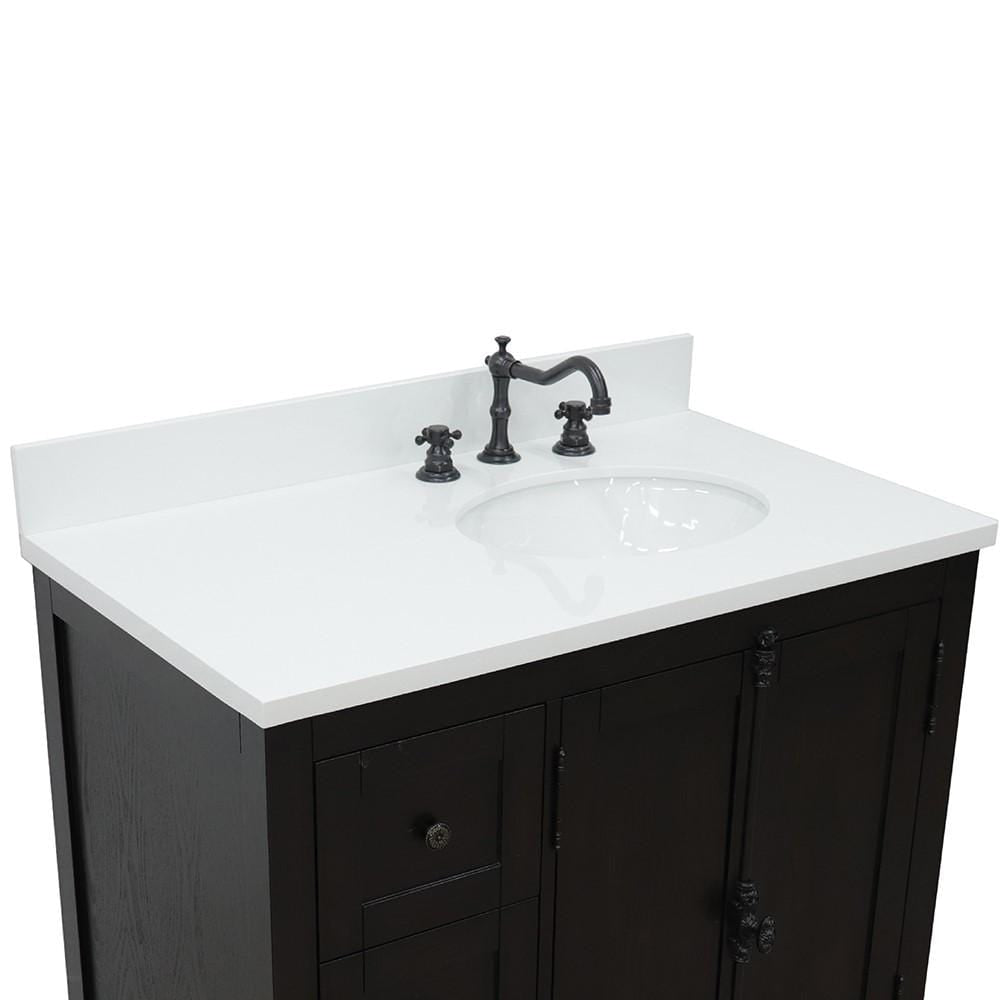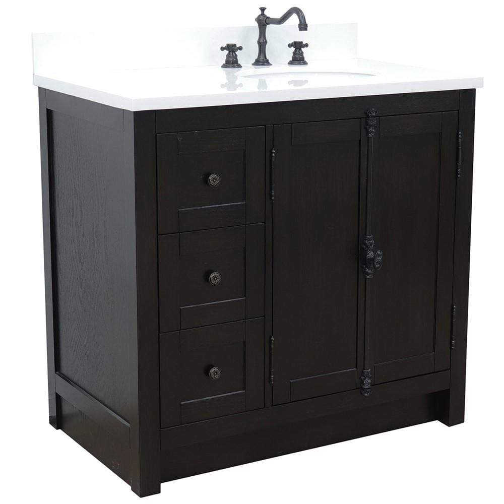 BellaTerra 37" Single vanity in Brown Ash finish with White quartz top and oval sink - Right doors/Right sink 400100-37R-BA-WEO