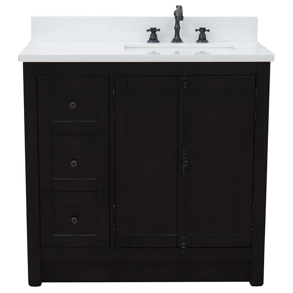BellaTerra Home 37" Single vanity in Brown Ash finish with White quartz top and rectangle sink - Right doors/Right sink 400100-37R-BA-WER