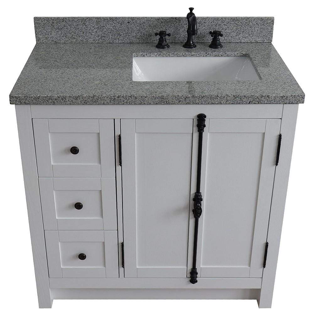 BellaTerra 37" Single vanity in Glacier Ash finish with Gray granite top and rectangle sink - Right doors/Right sink 400100-37R-GA-GYR