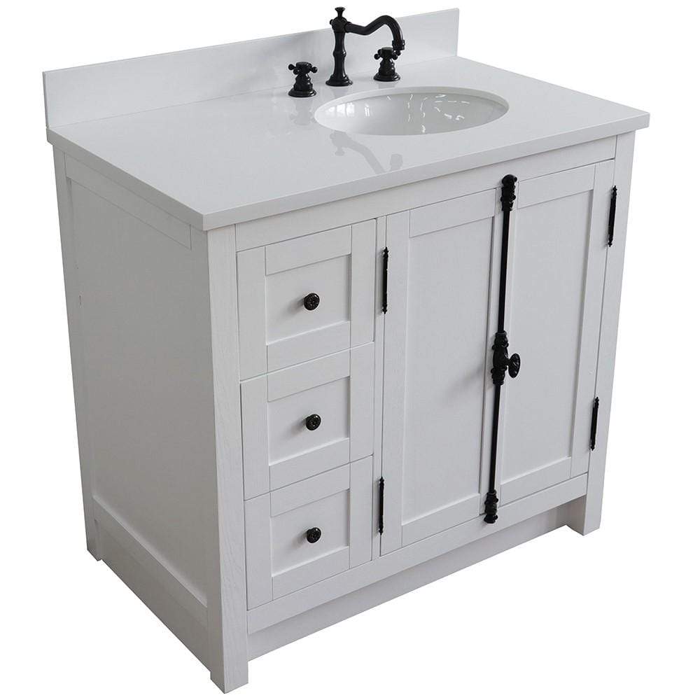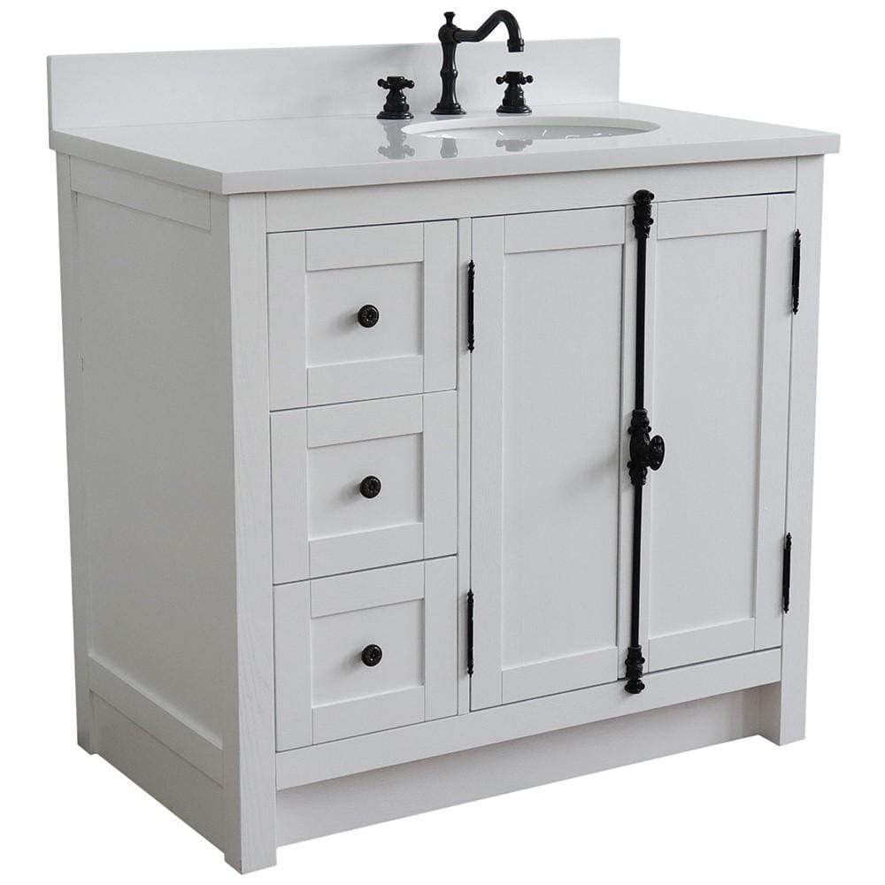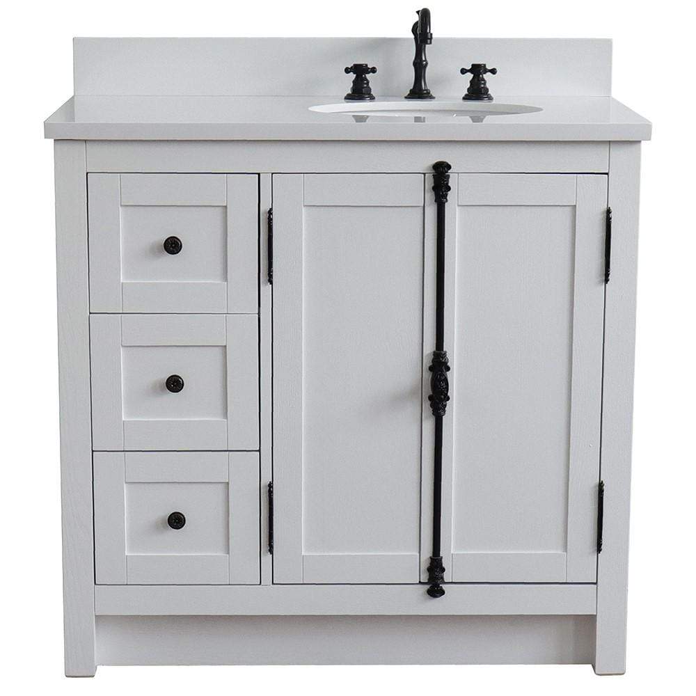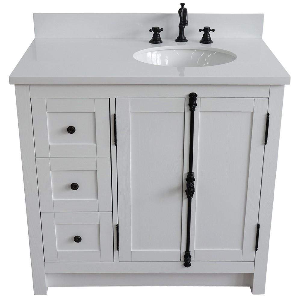 BellaTerra 37" Single vanity in Glacier Ash finish with White quartz top and oval sink - Right doors/Right sink 400100-37R-GA-WEO