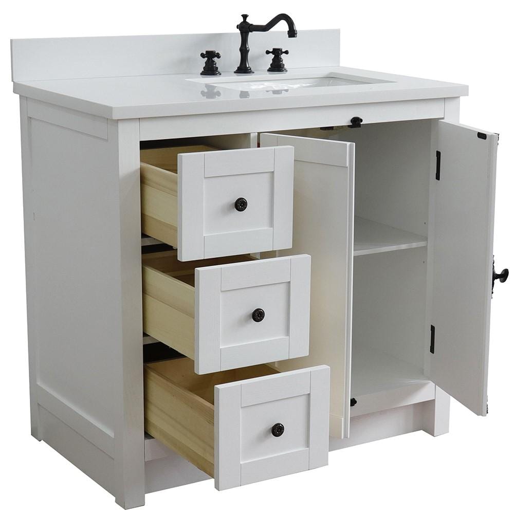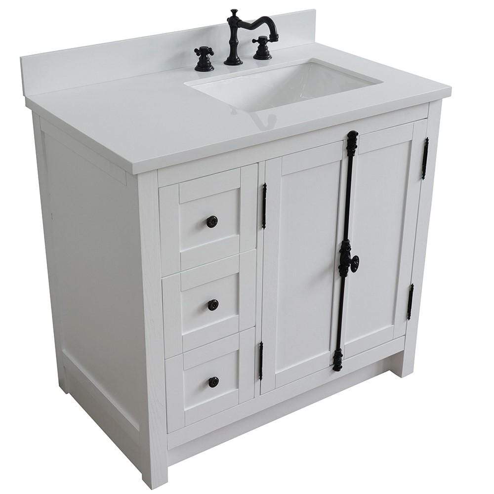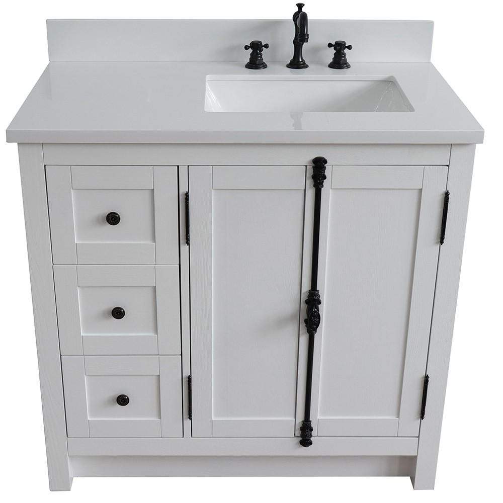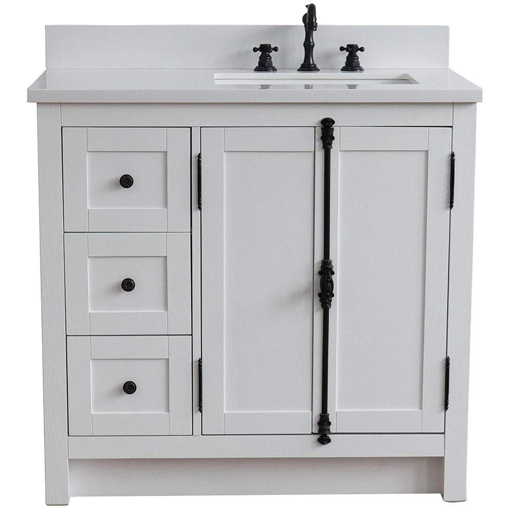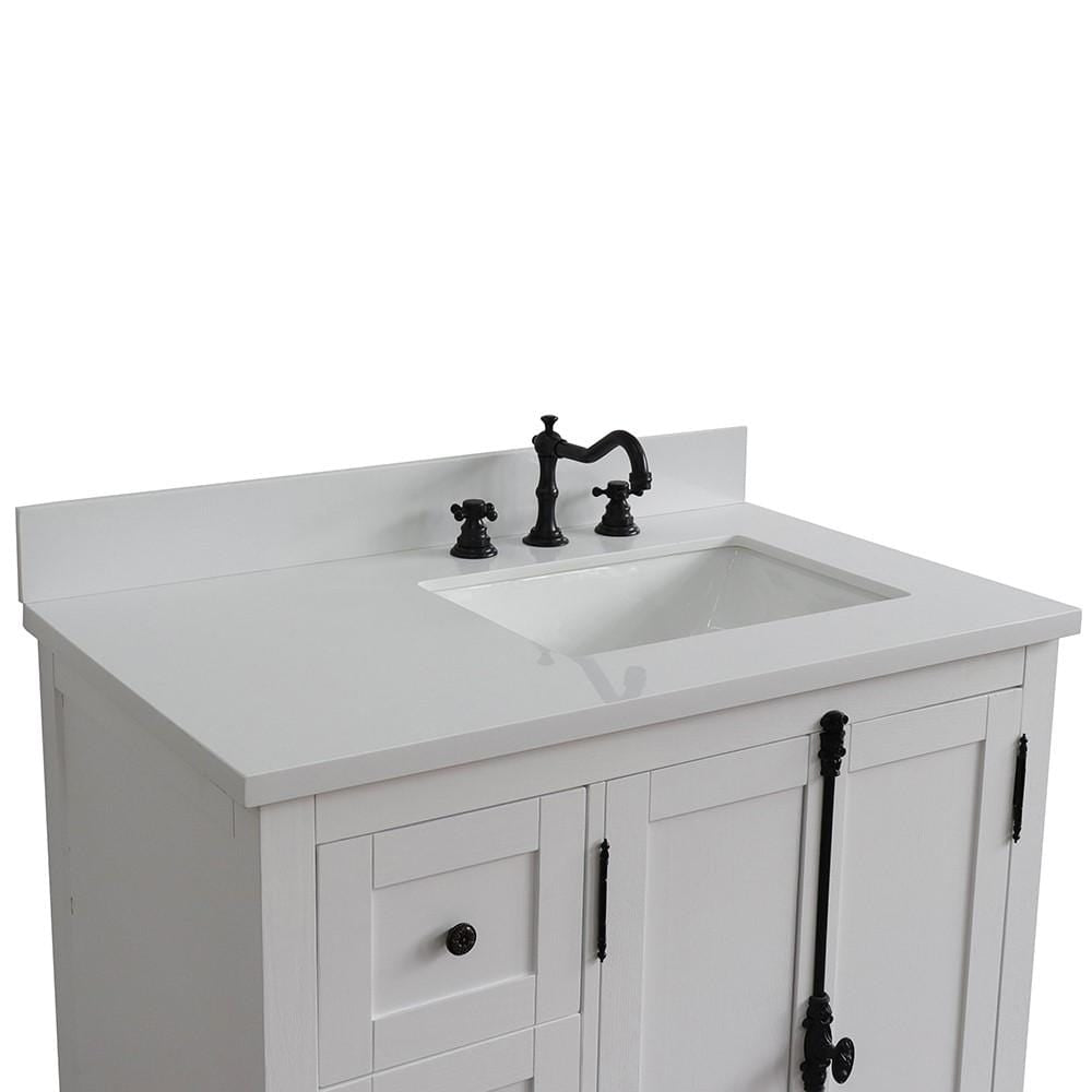 BellaTerra Home 37" Single vanity in Glacier Ash finish with White quartz top and rectangle sink - Right doors/Right sink 400100-37R-GA-WER