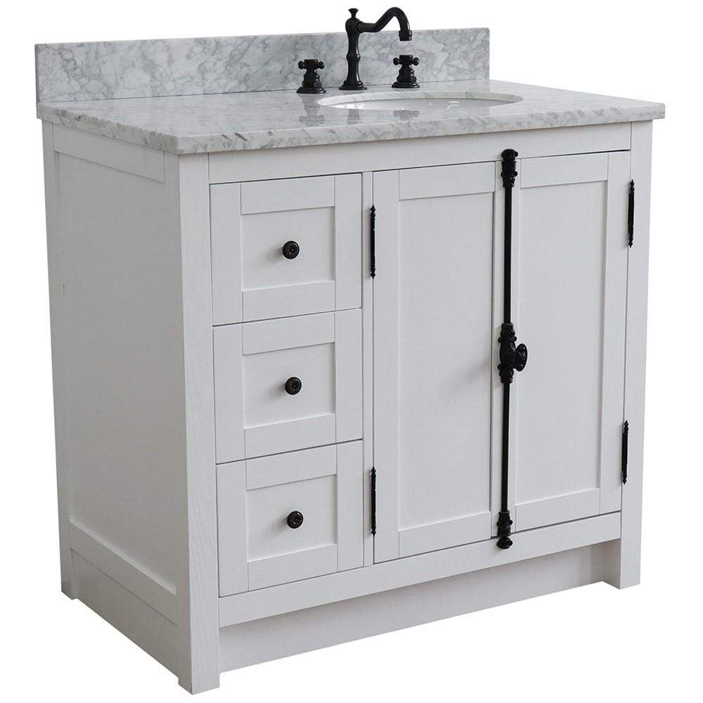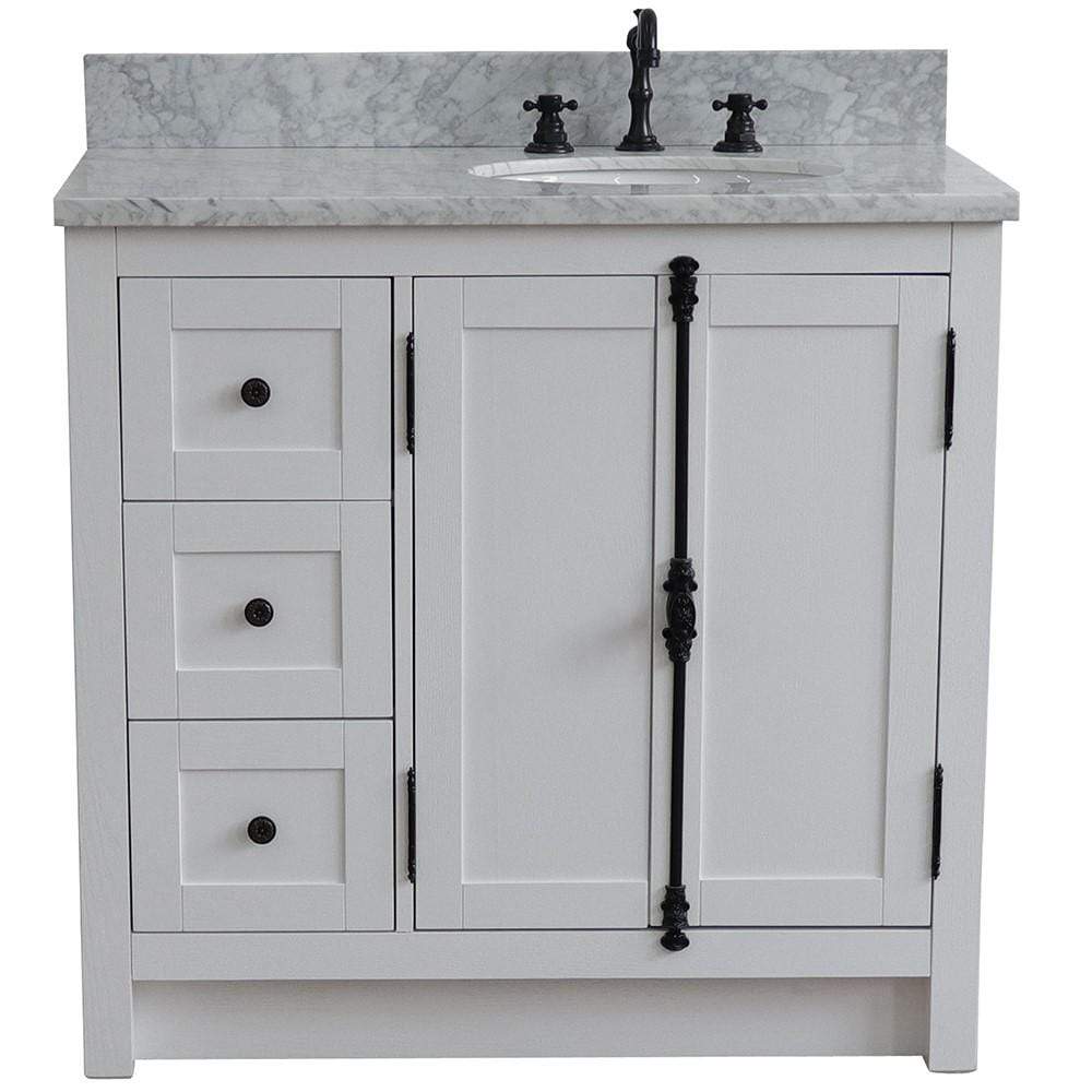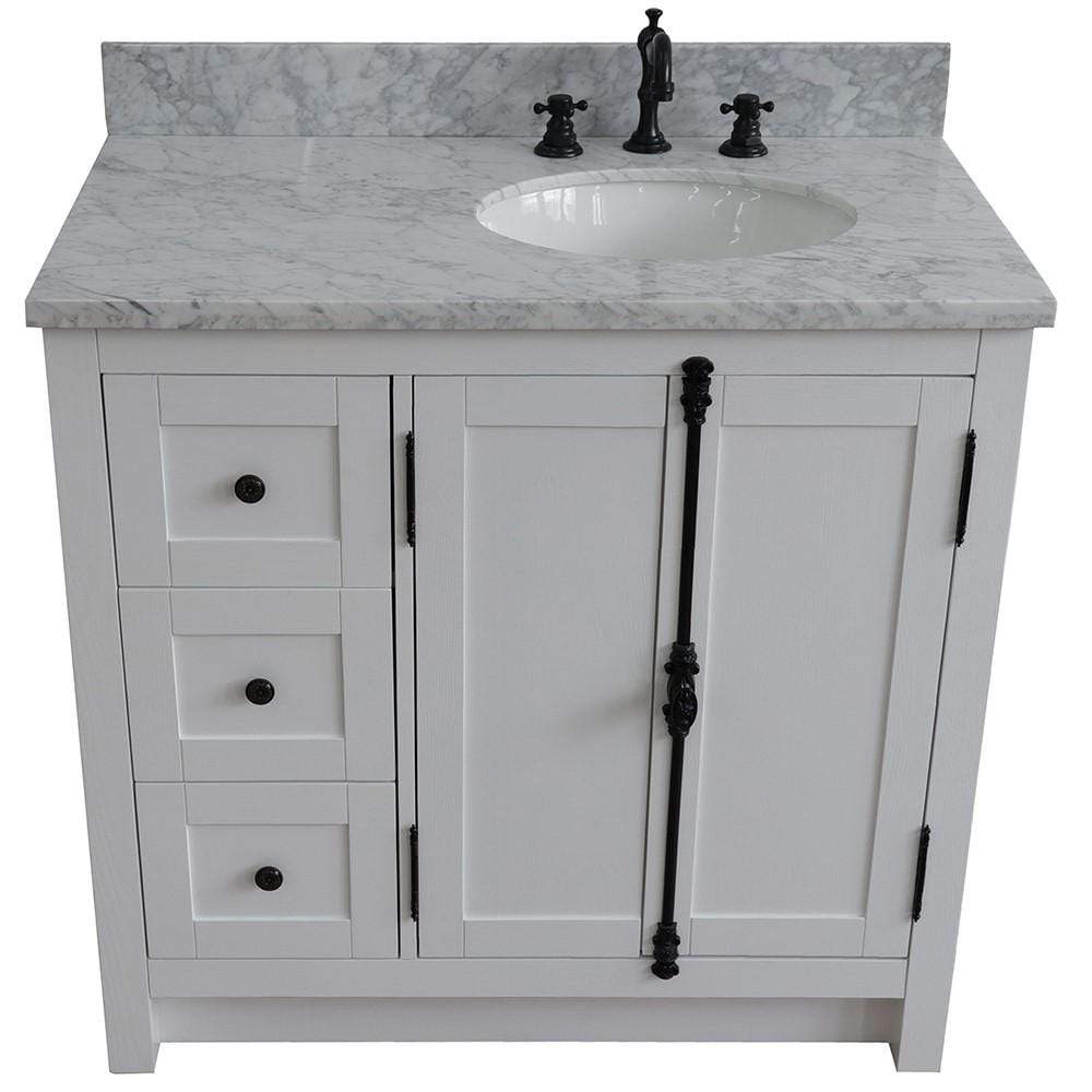 BellaTerra Home 37" Single vanity in Glacier Ash finish with White Carrara top and oval sink - Right doors/Right sink 400100-37R-GA-WMO
