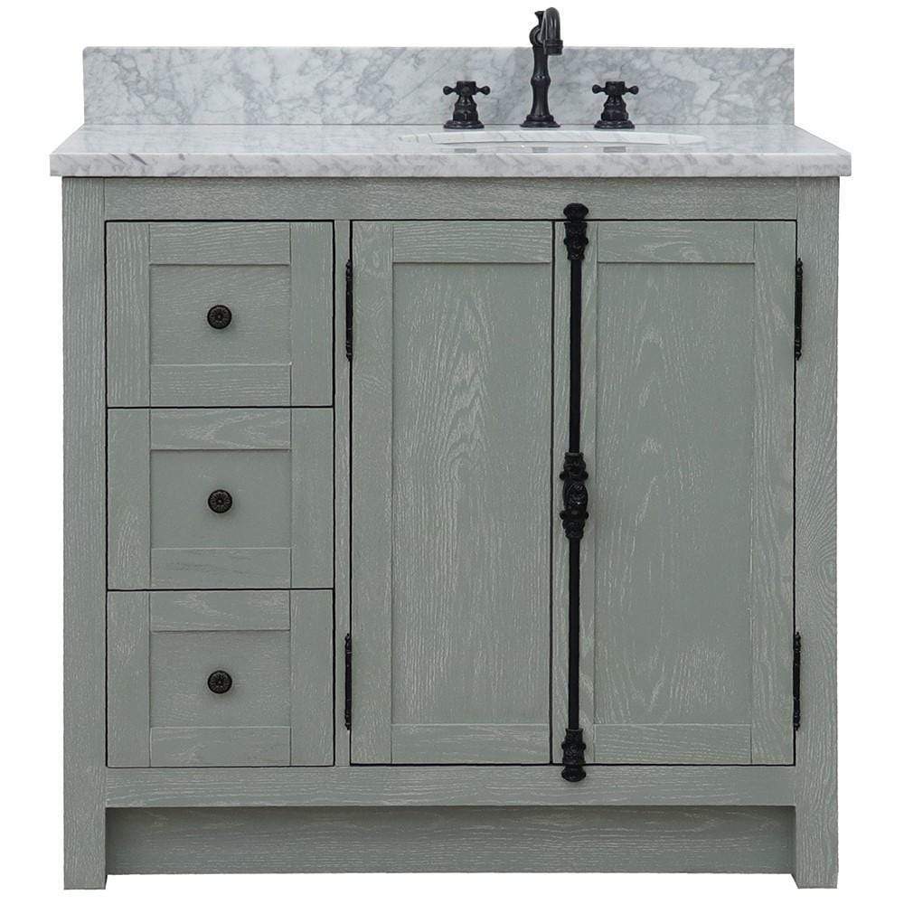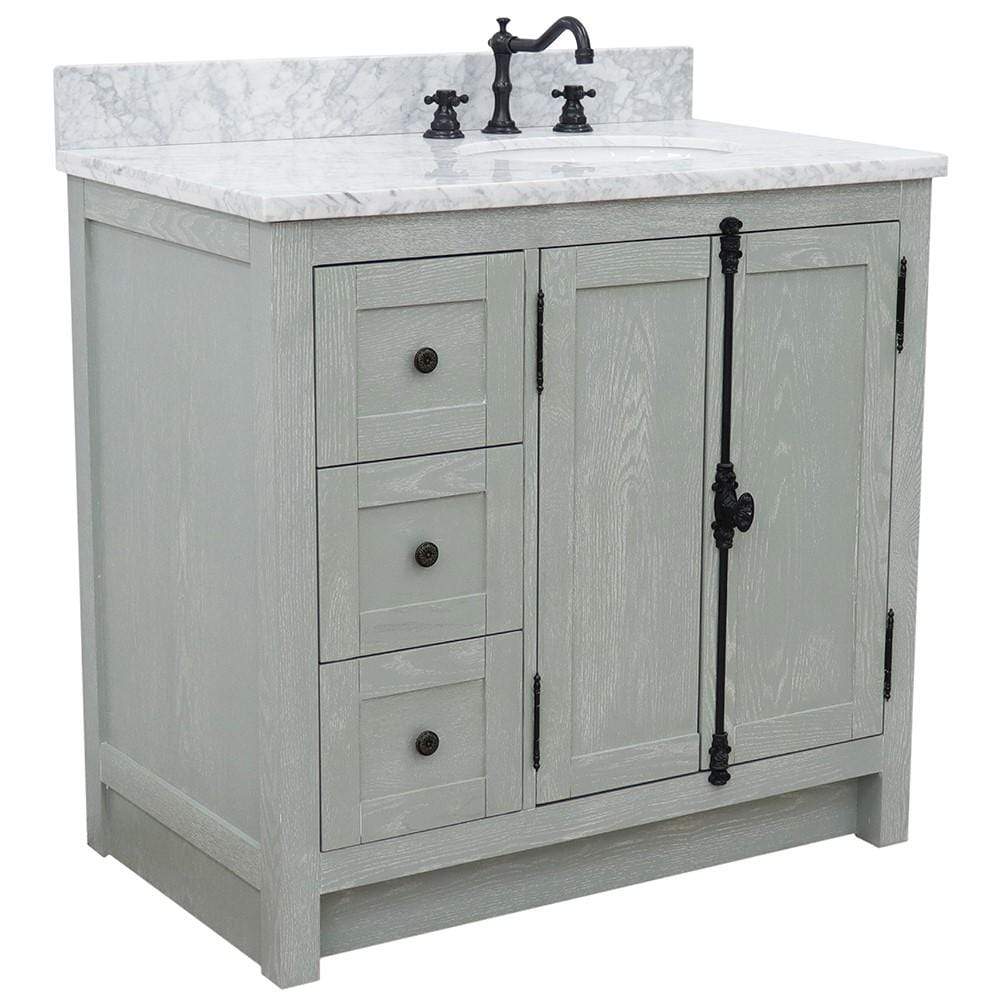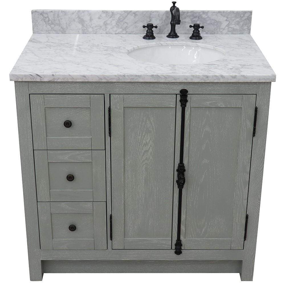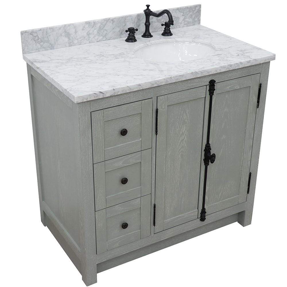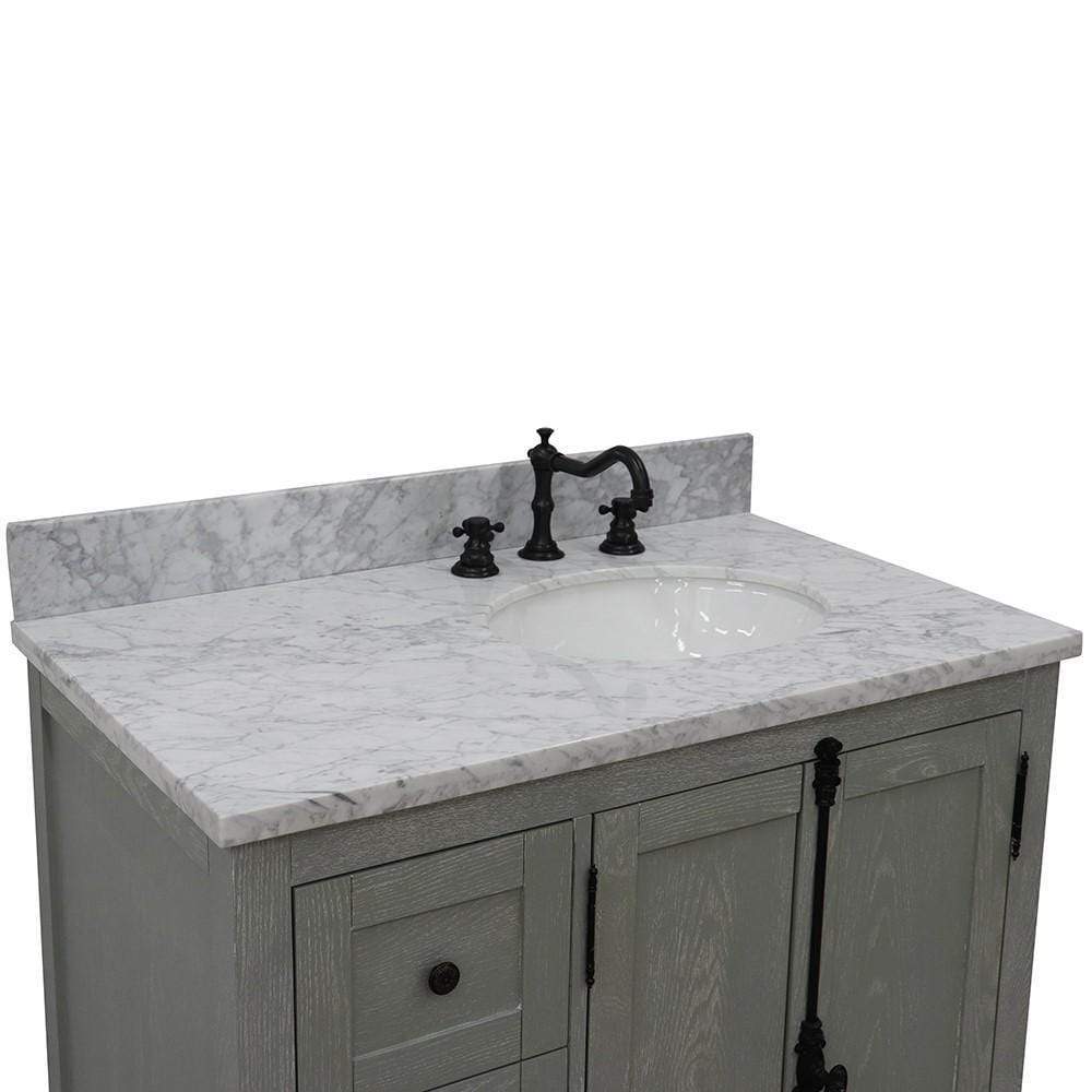 BellaTerra Home 37" Single vanity in Gray Ash finish with White Carrara top and oval sink - Right doors/Right sink 400100-37R-GYA-WMO