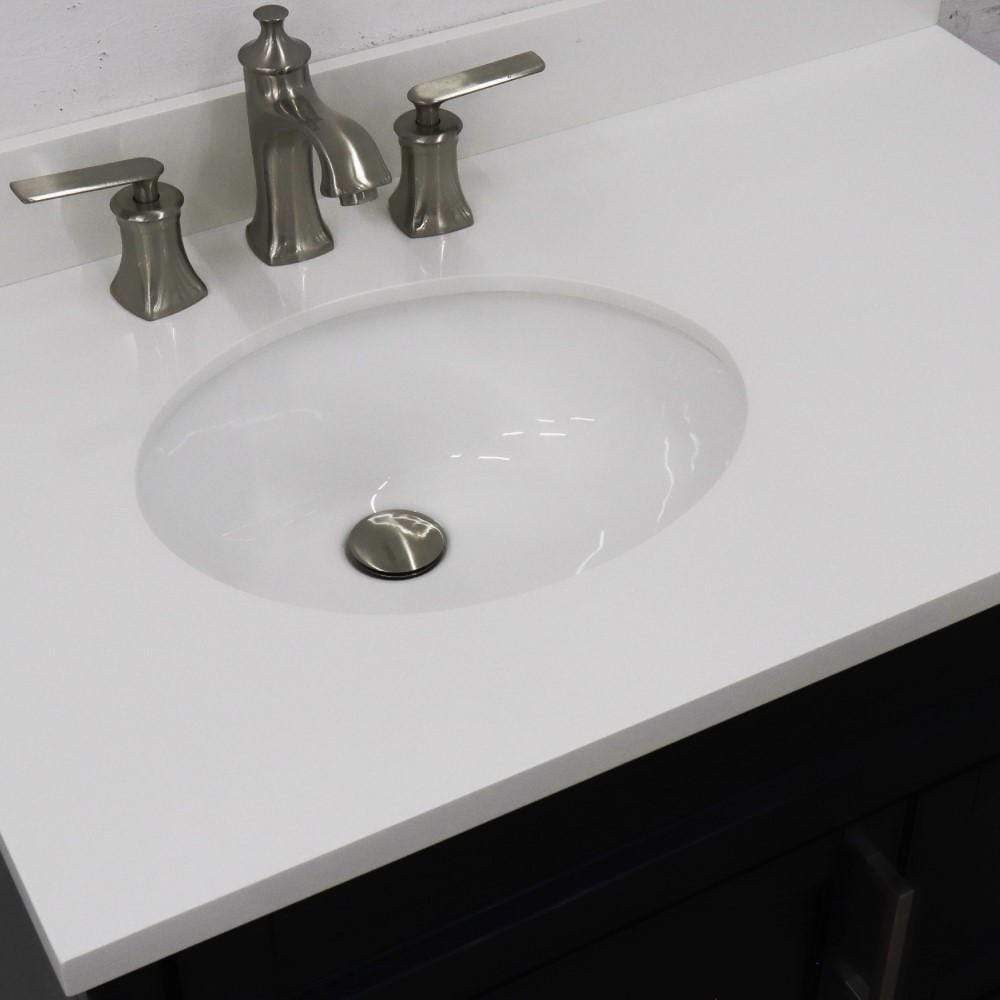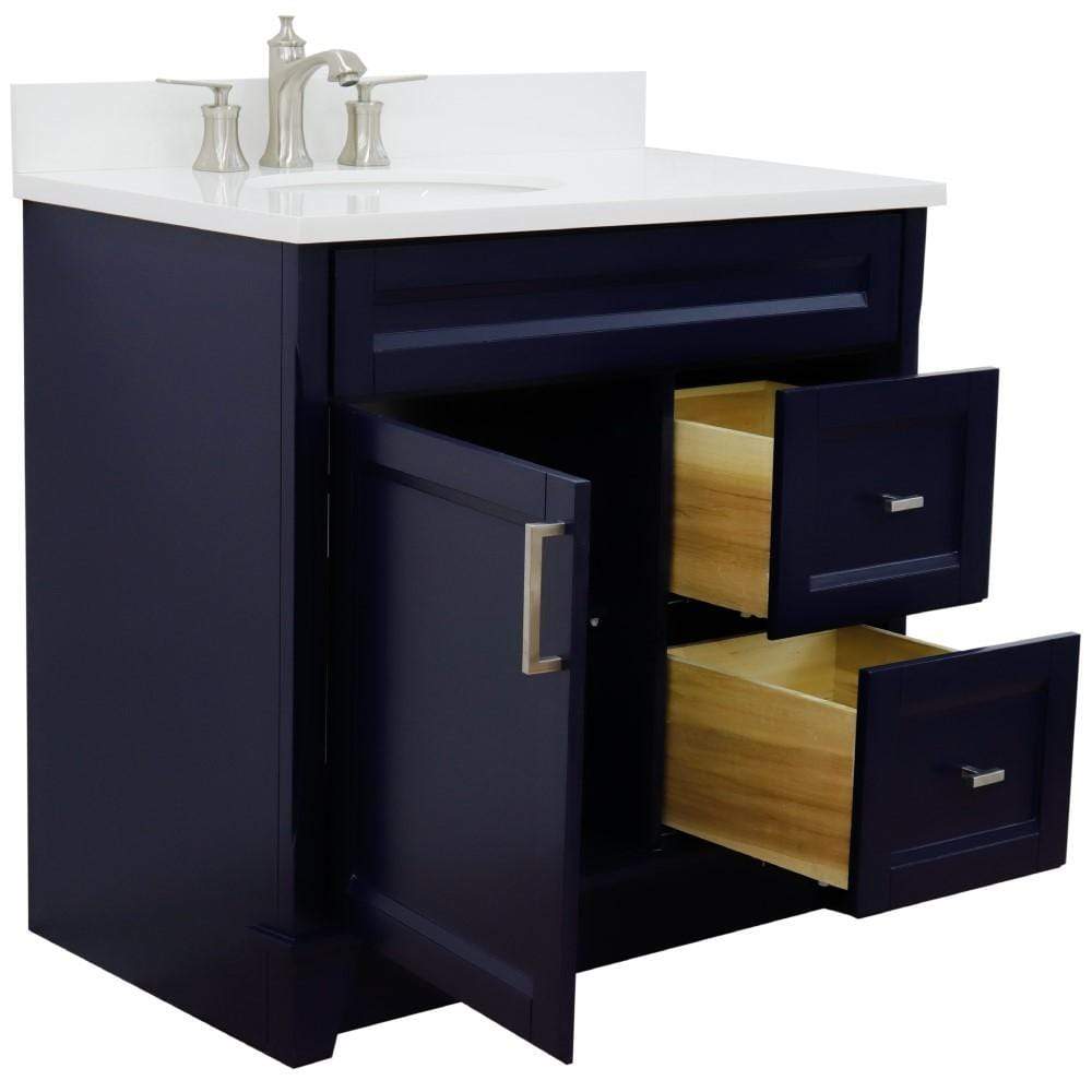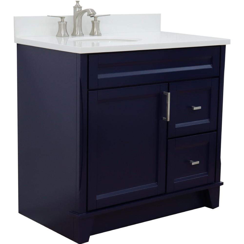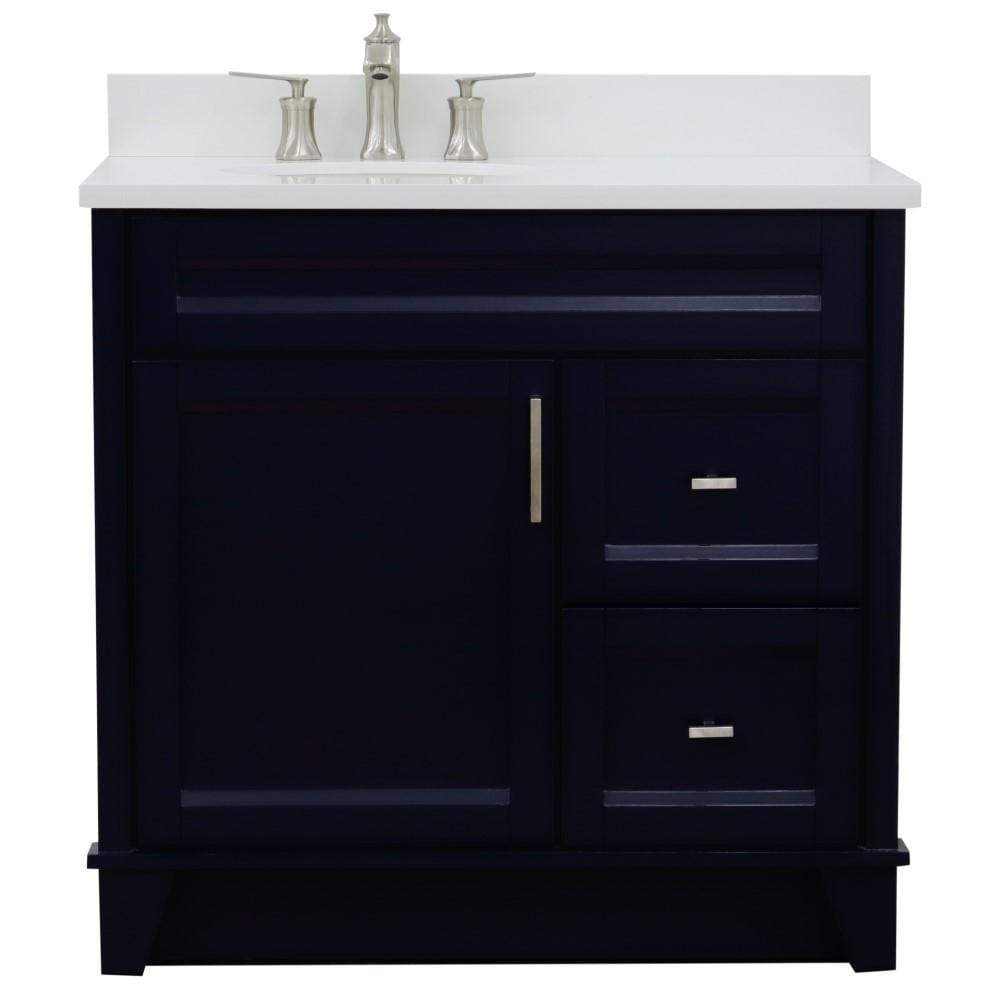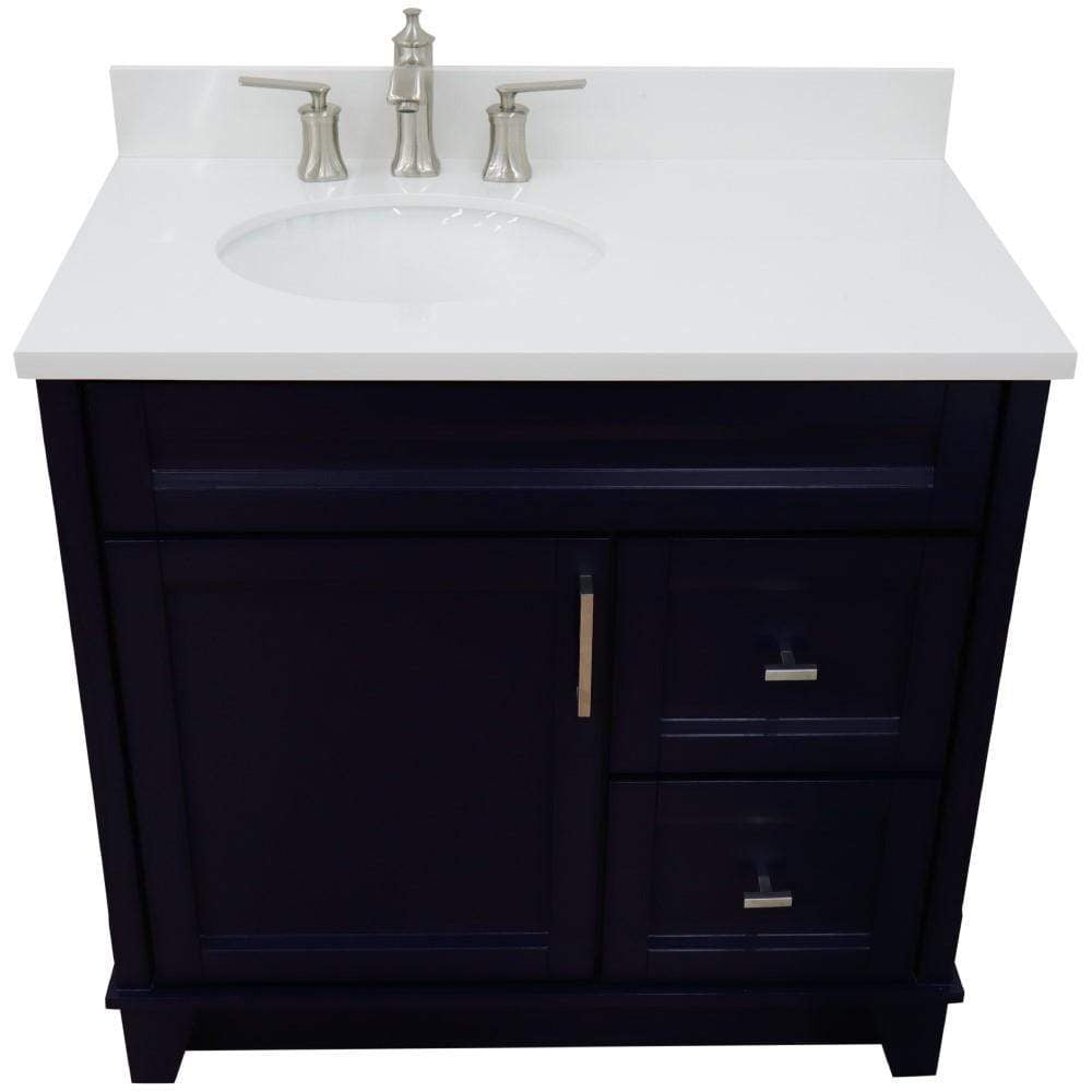 BellaTerra Home 37" Single sink vanity in Blue finish with White quartz and Left door/Left sink 400700-37L-BU-WEOL