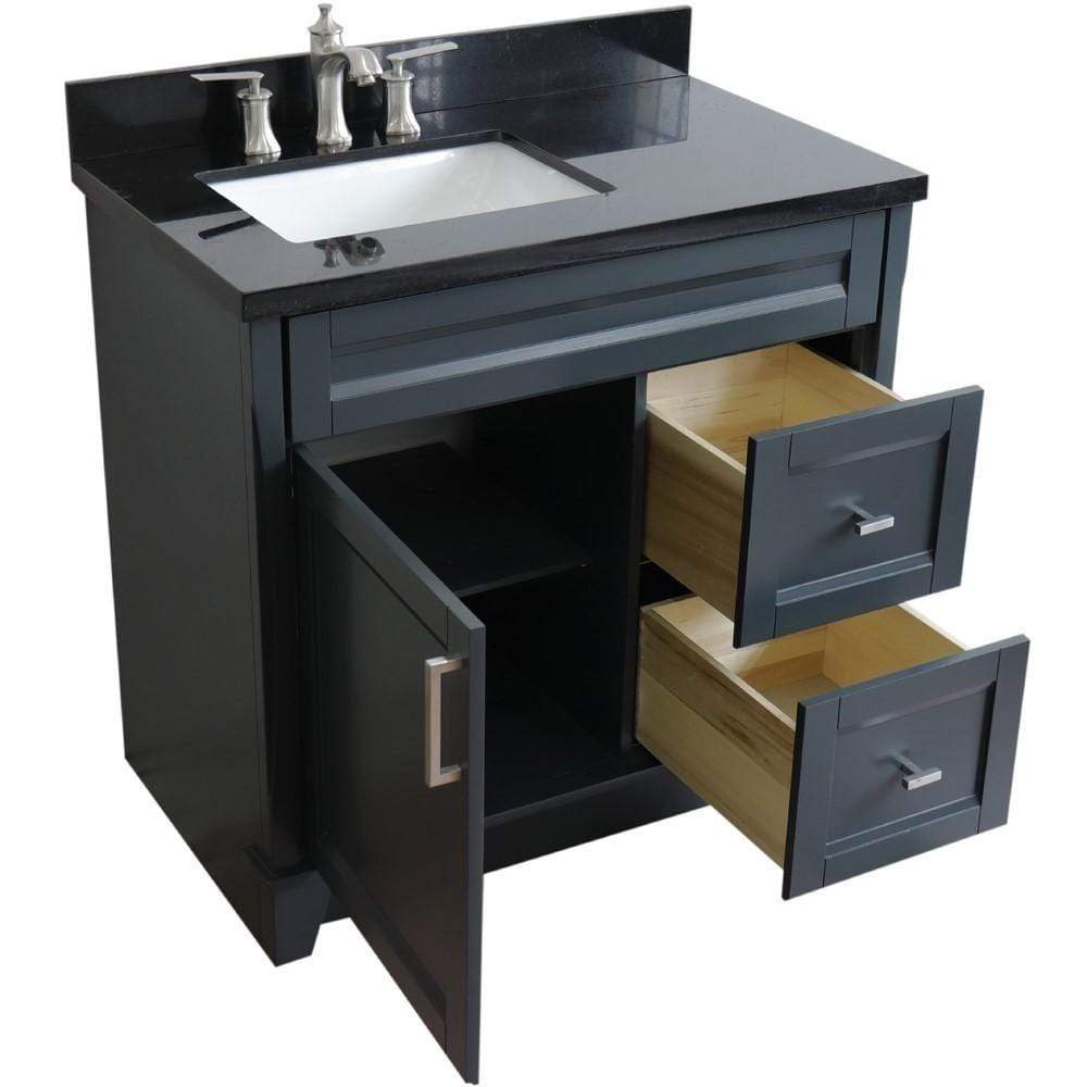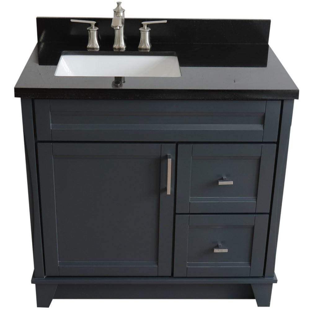 BellaTerra Home 37" Single sink vanity in Dark Gray finish with Black galaxy granite and Left door/Left sink 400700-37L-DG-BGRL 400700-37L-DG-BGRL