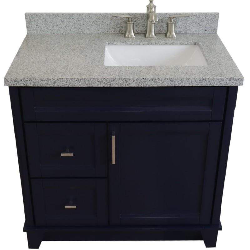 BellaTerra Home 37" Single sink vanity in Blue finish with Gray granite and LEFT rectangle sink- RIGHT drawers 400700-37R-BU-GYRR