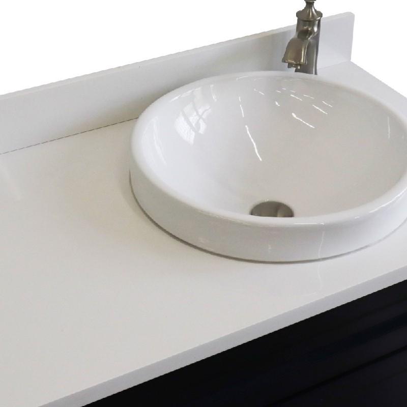BellaTerra Home 37" Single sink vanity in Blue finish with White quartz and LEFT round sink- RIGHT drawers 400700-37R-BU-WERDR