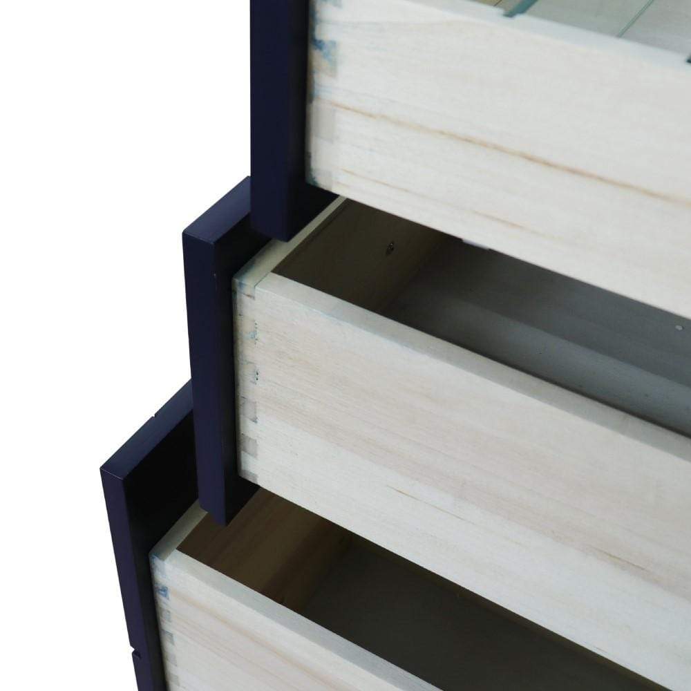 The Terni collection by Bellaterra Home features simple style bathroom vanities that can integrate seamlessly with any home design. From a simple or to the grand home design, you will appreciate this beautifully crafted piece of furniture as the focal point in your bathroom. The structure of the cabinet is built with solid oak. The vanity has three drawers and four cabinet doors that open to a large ample storage space. The drawers are constructed with English dovetail and are installed with smooth full extension glides to provide durability. This vanity features brushed nickel finish hardware. Cabinet only.