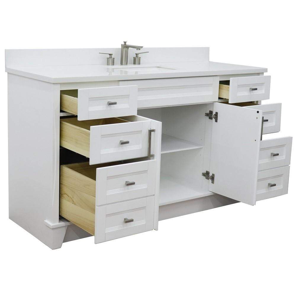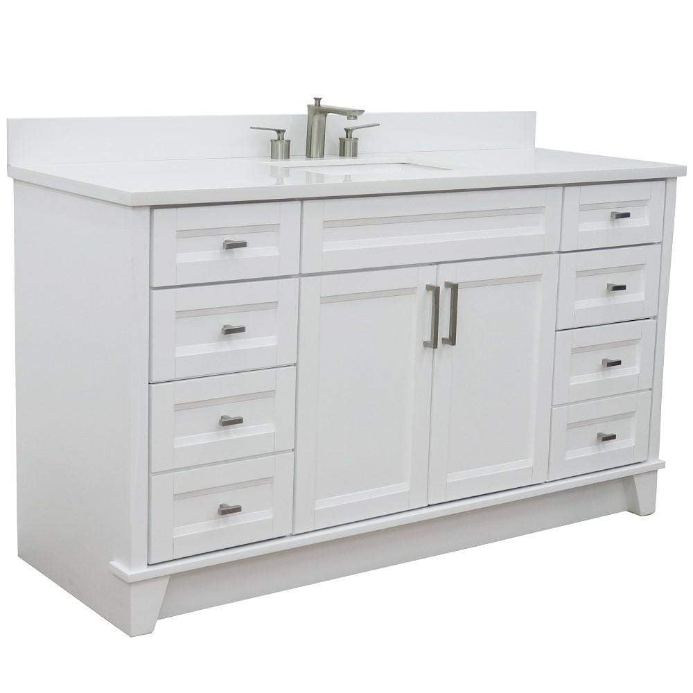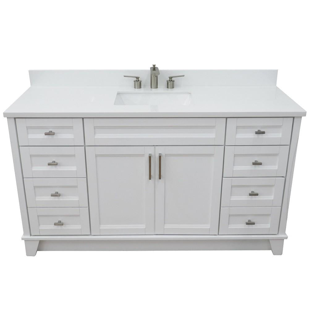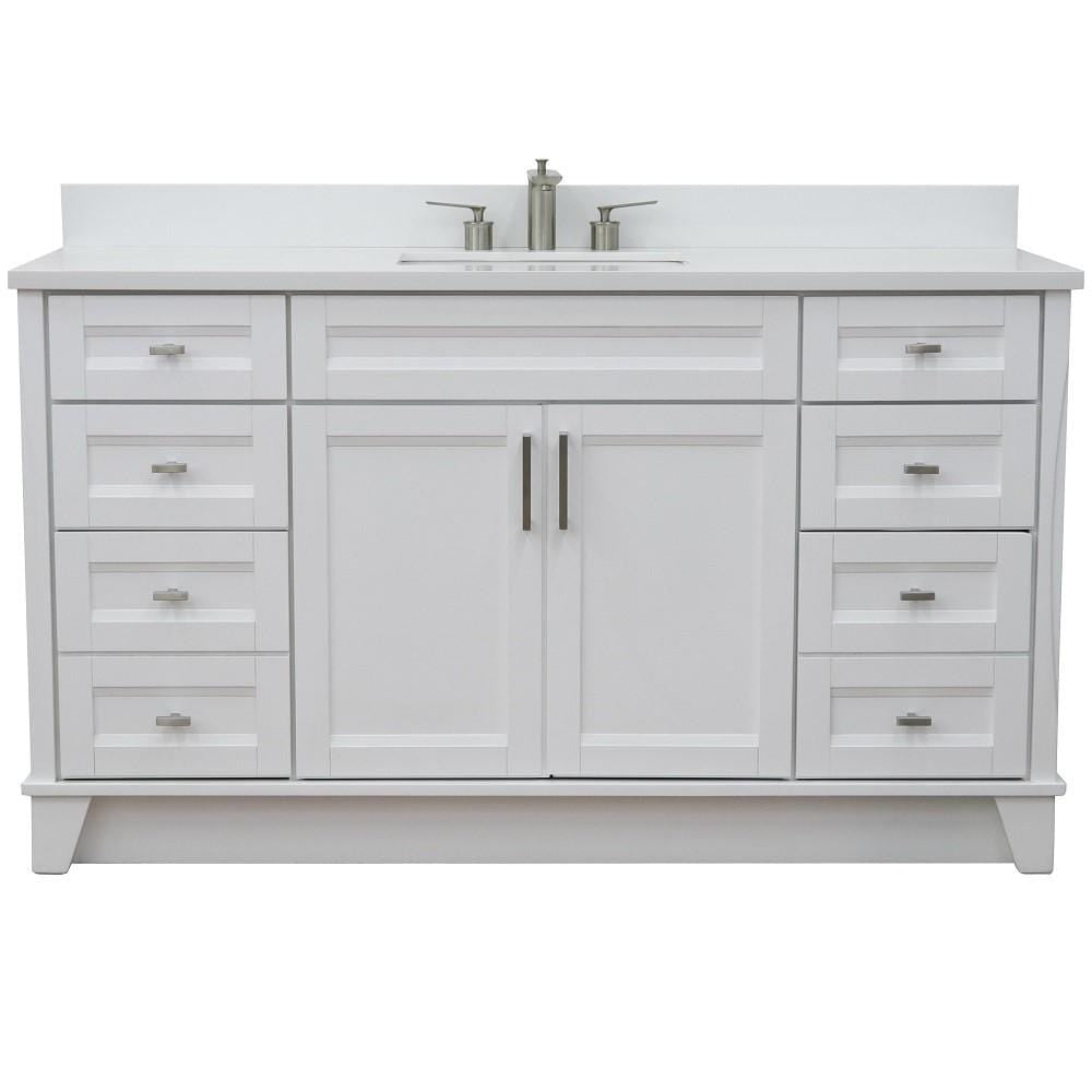 BellaTerra Home 61" Single sink vanity in White finish and White quartz and rectangle sink 400700-61S-WH-WER