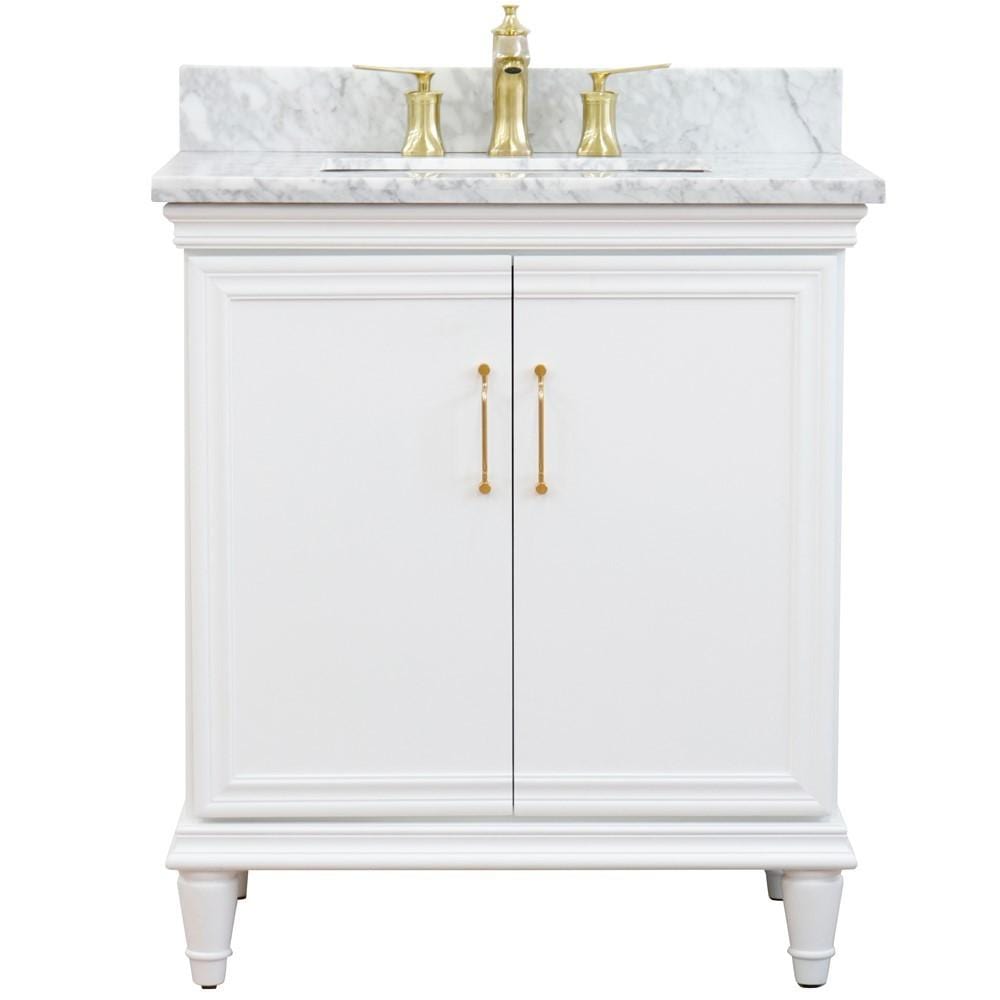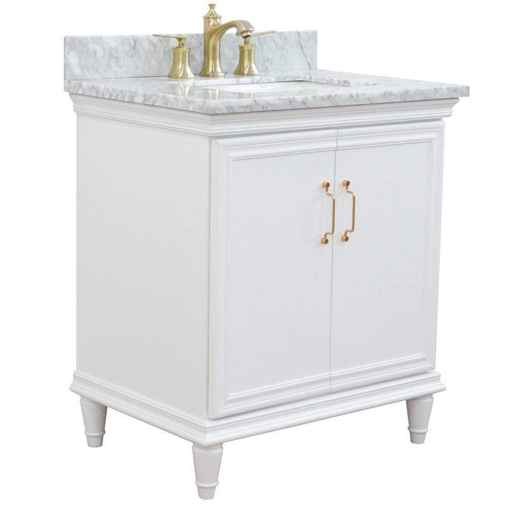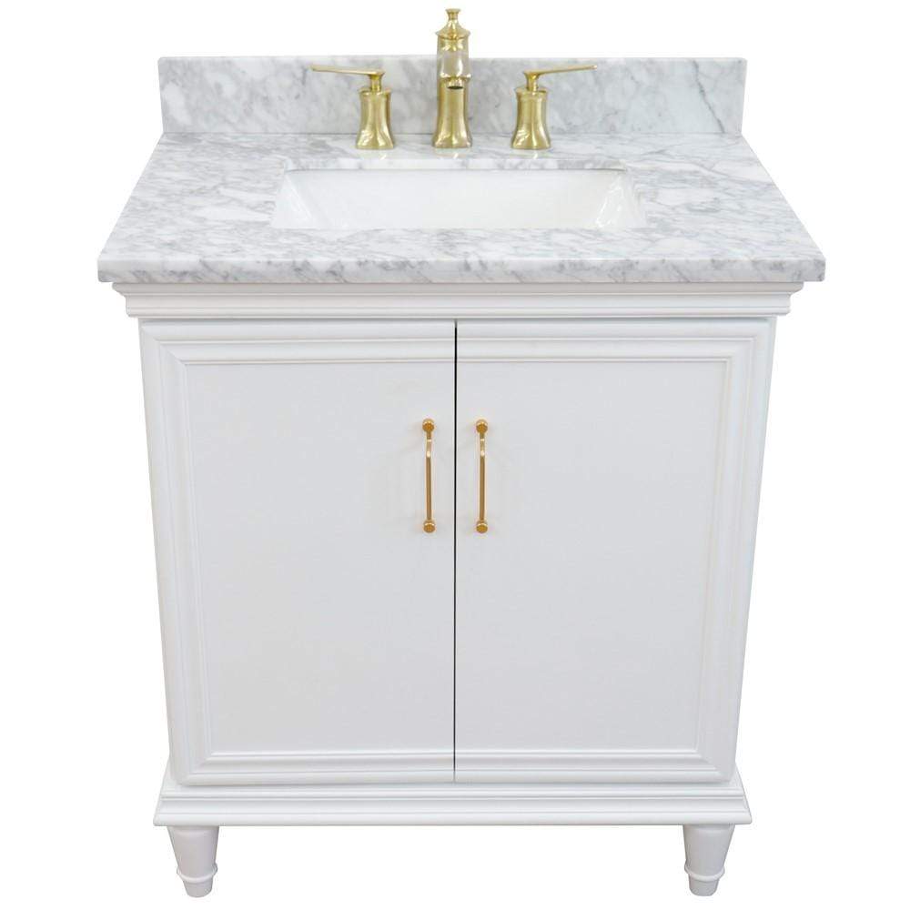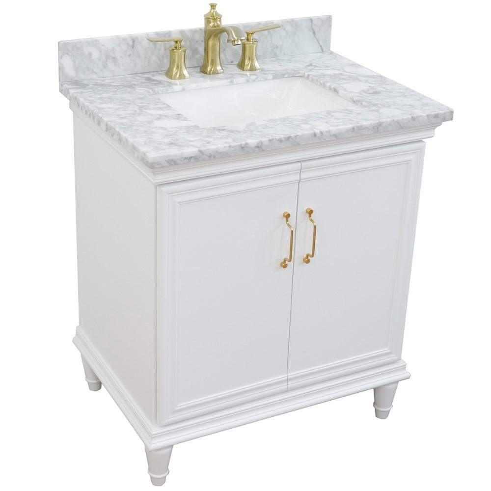 BellaTerra Home 31" Single vanity in White finish with White Carrara and rectangle sink 400800-31-WH-WMR