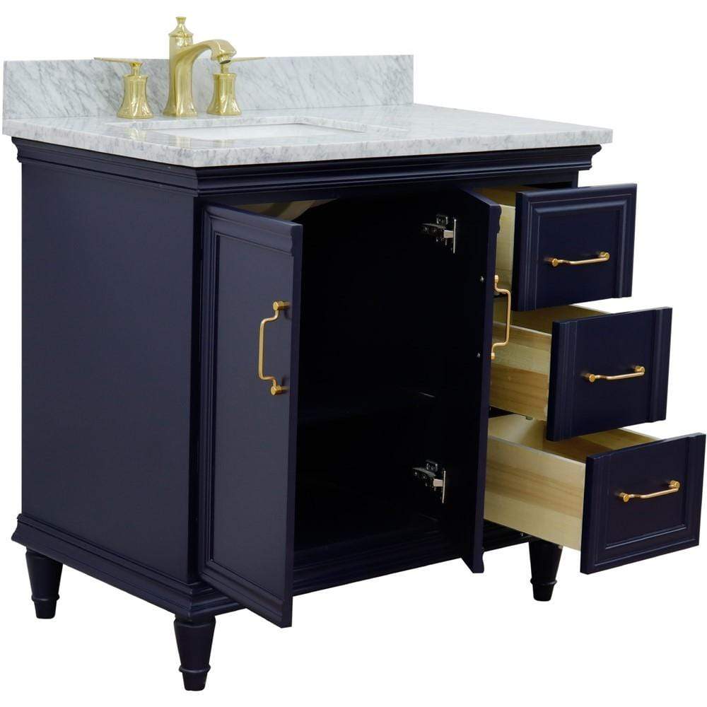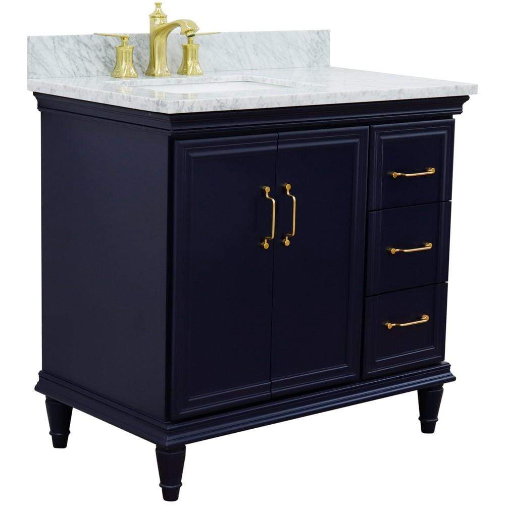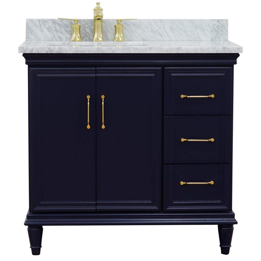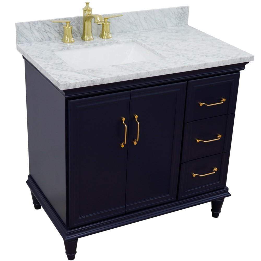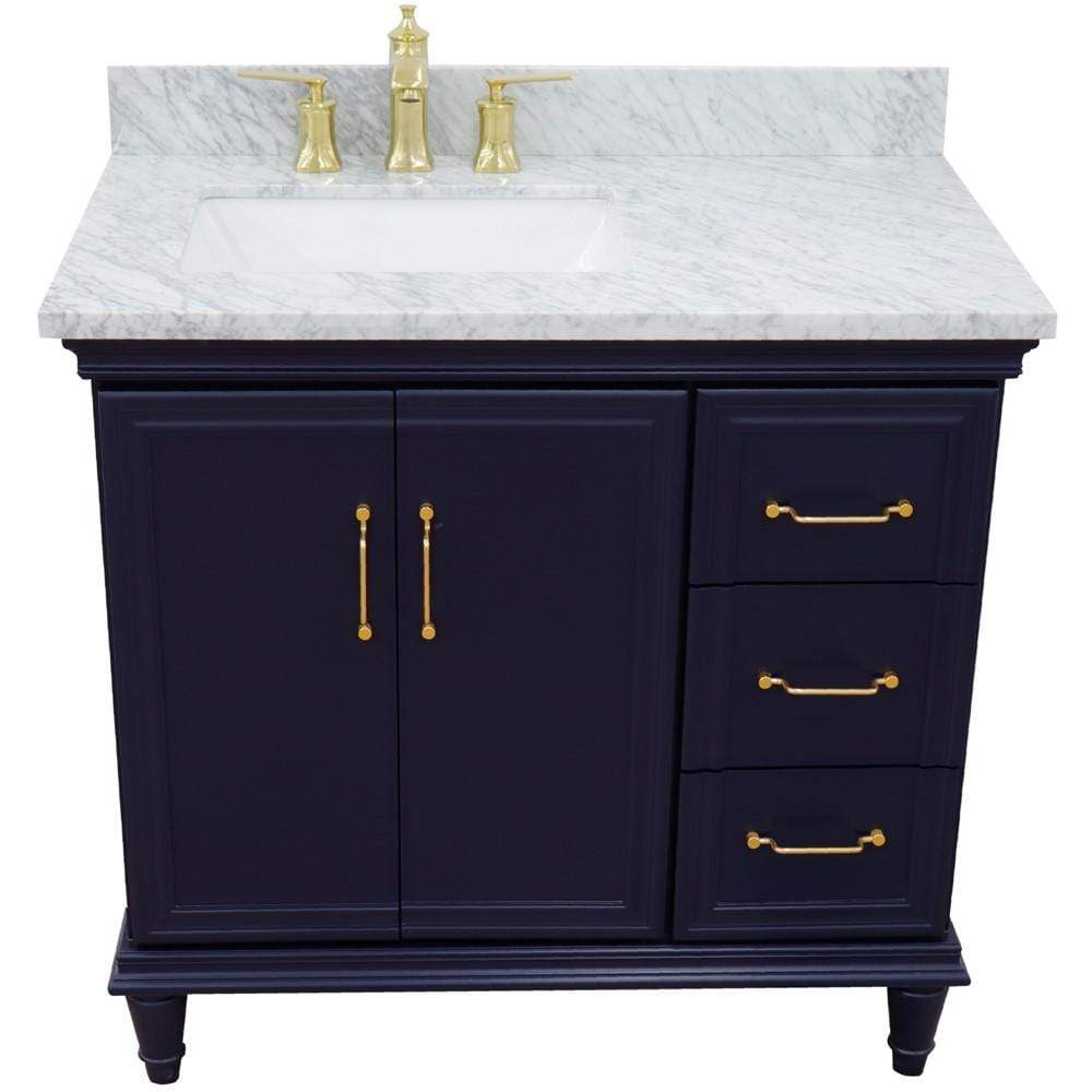 BellaTerra Home 37" Single vanity in Blue finish with White Carrara and rectangle sink- Left door/Left sink 400800-37L-BU-WMRL