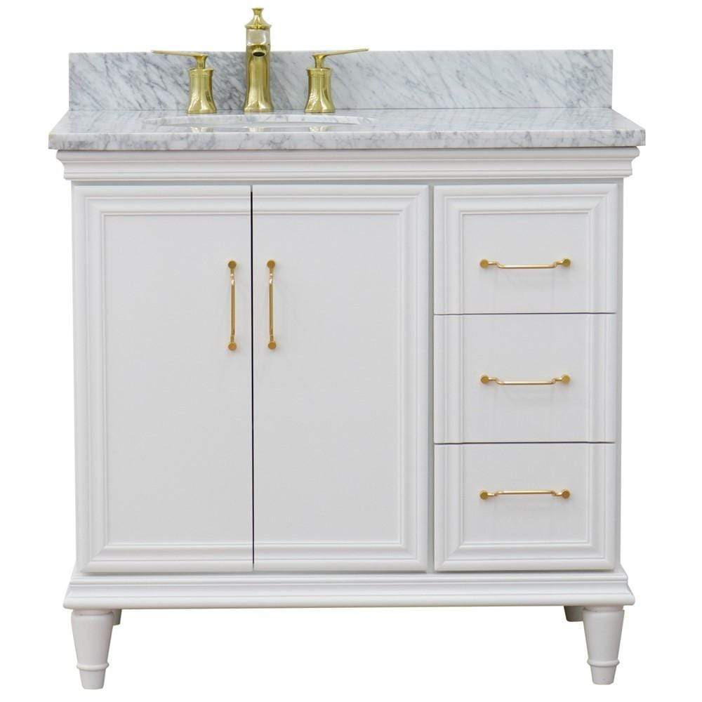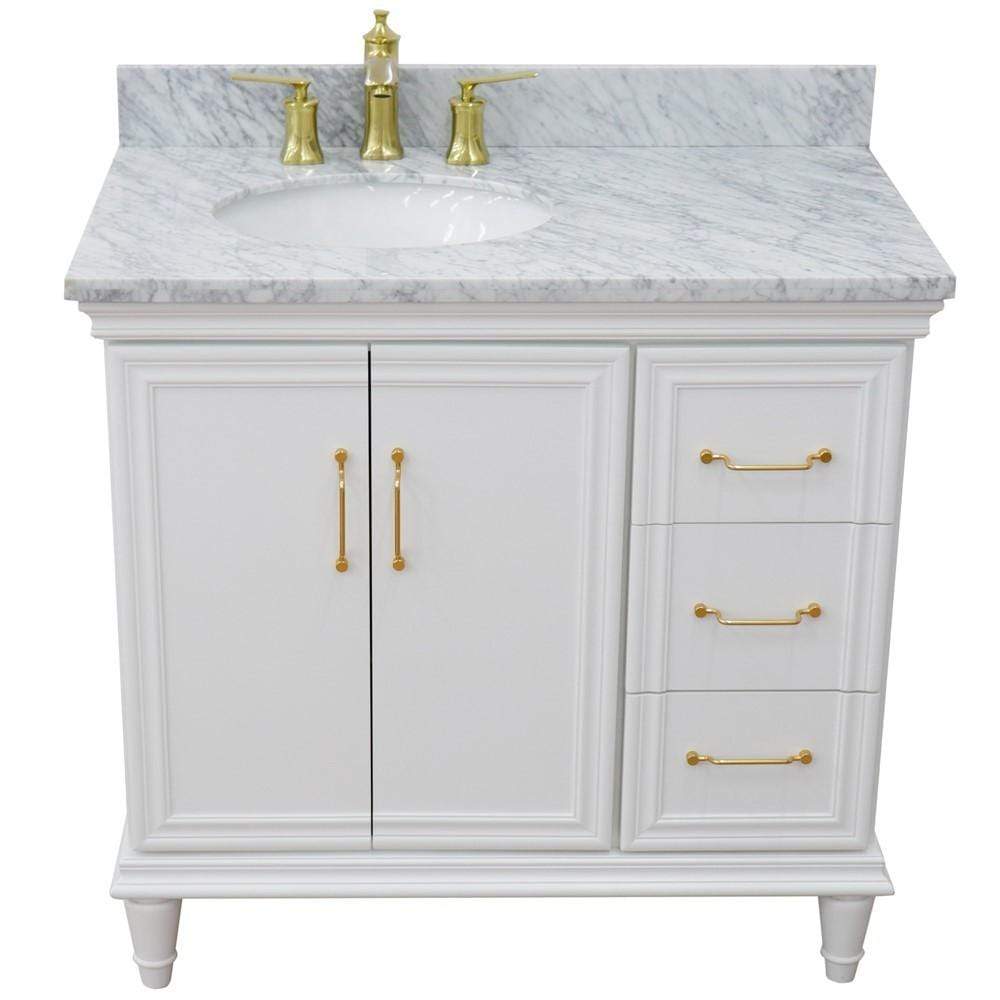 BellaTerra Home 37" Single vanity in White finish with White Carrara and oval sink- Left door/Left sink 400800-37L-WH-WMOL