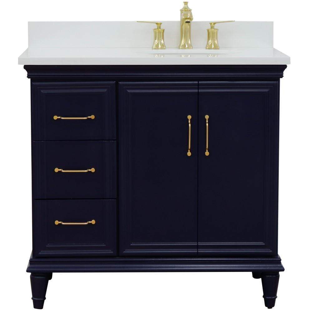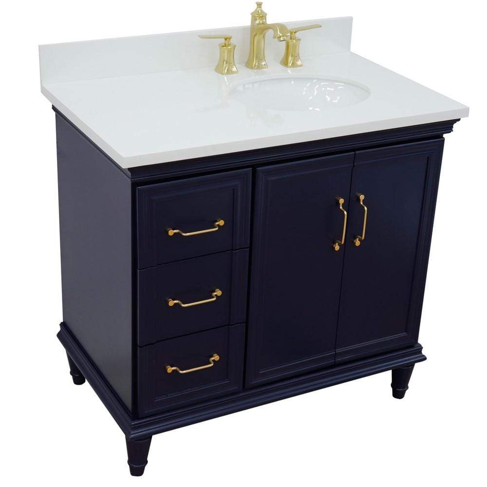 BellaTerra Home 37" Single vanity in Blue finish with White quartz and oval sink- Right door/Right sink 400800-37R-BU-WEOR
