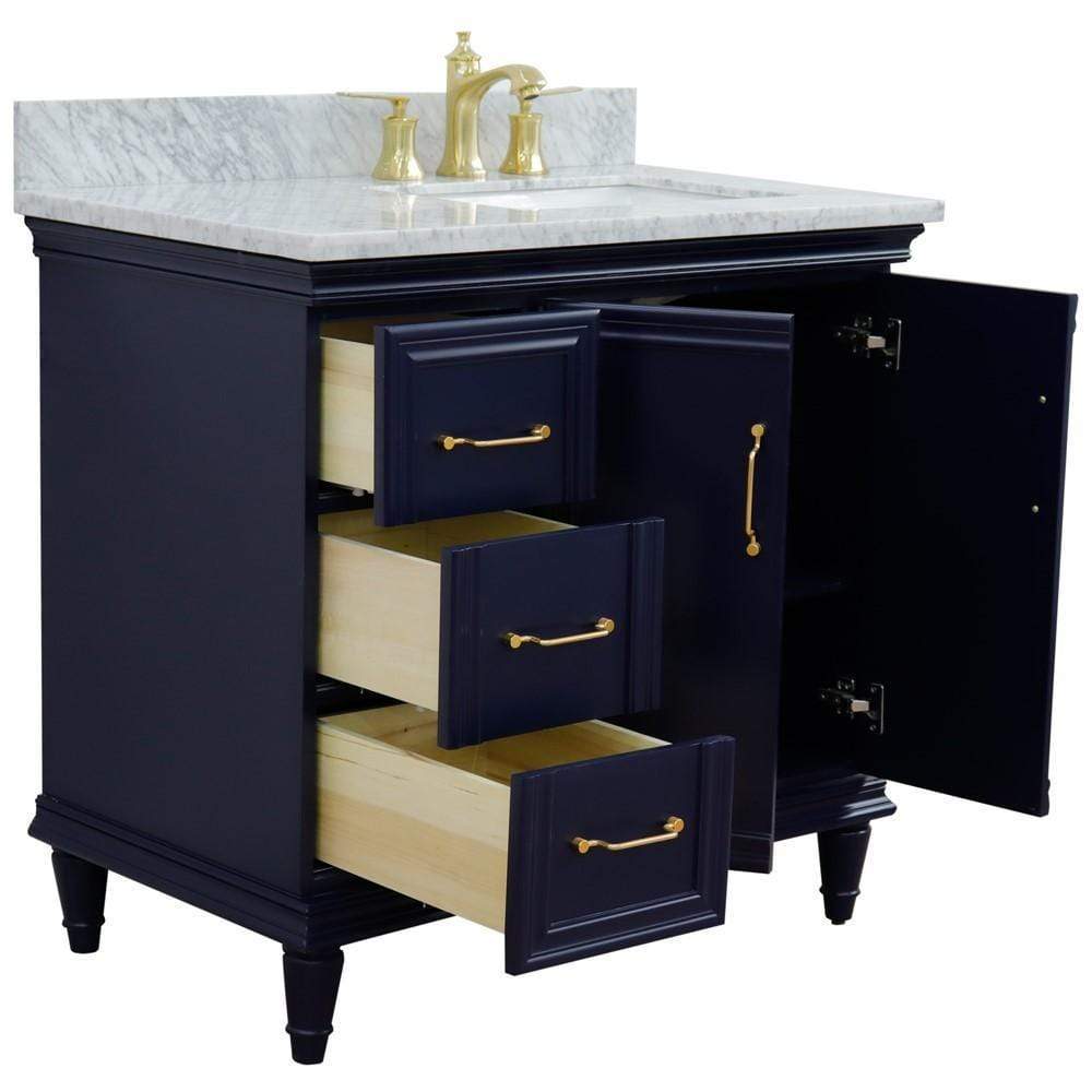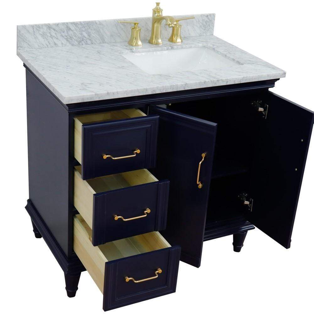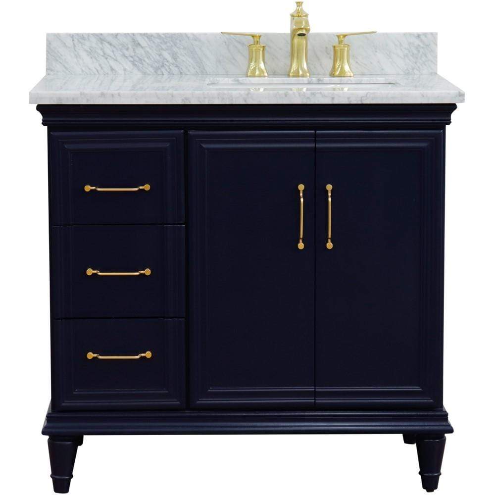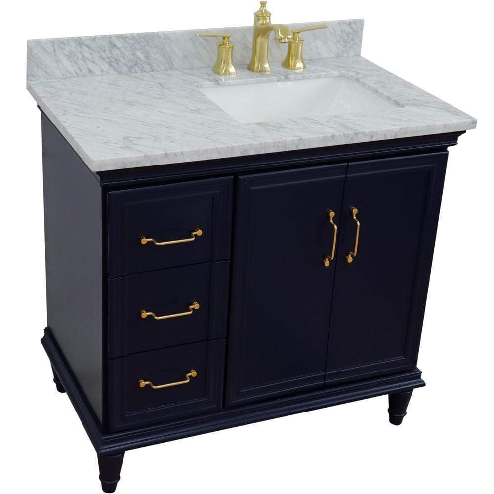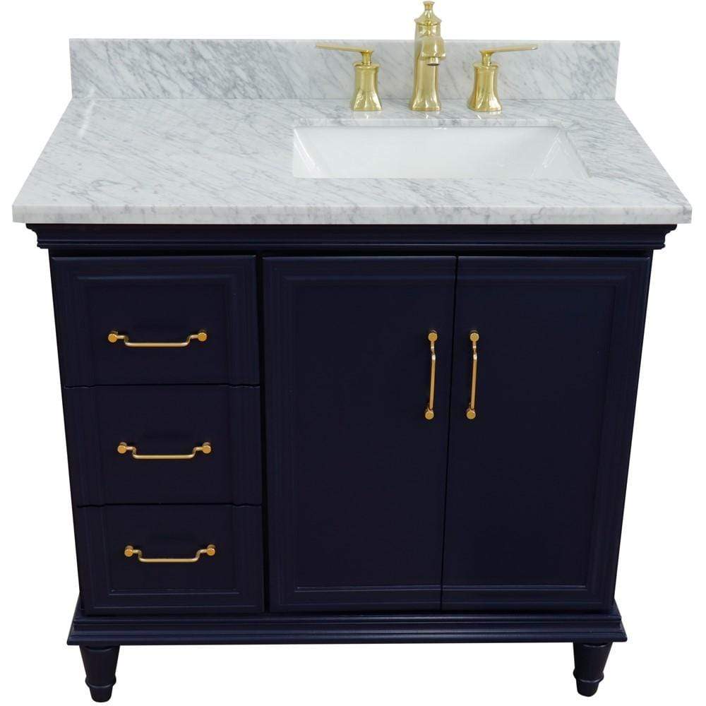 BellaTerra Home 37" Single vanity in Blue finish with White Carrara and rectangle sink- Right door/Right sink 400800-37R-BU-WMRR