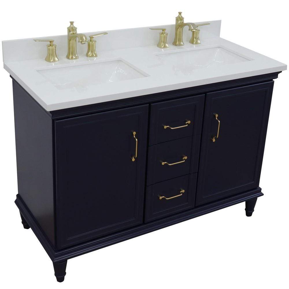 BellaTerra Home 49" Double vanity in Blue finish with White quartz and rectangle sink 400800-49D-BU-WER