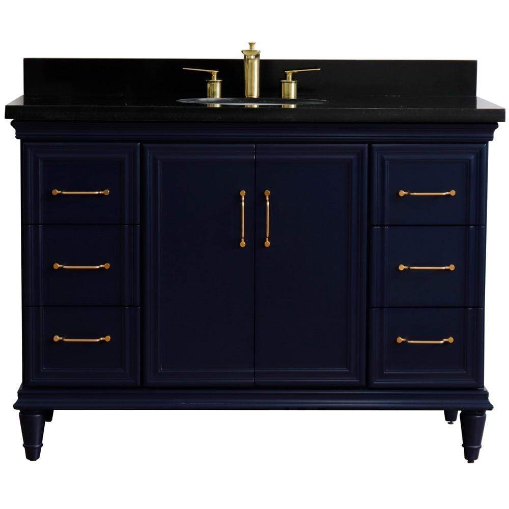 BellaTerra Home 49" Single sink vanity in Blue finish with Black galaxy granite and and oval sink 400800-49S-BU-BGO
