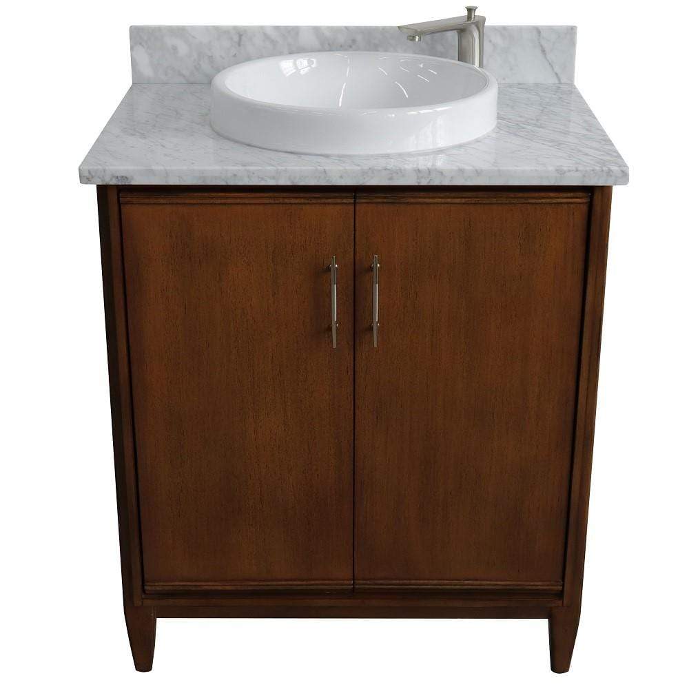 BellaTerra Home 31" Single sink vanity in Walnut finish with White carrara marble with round sink 00901-31-WA-WMRD