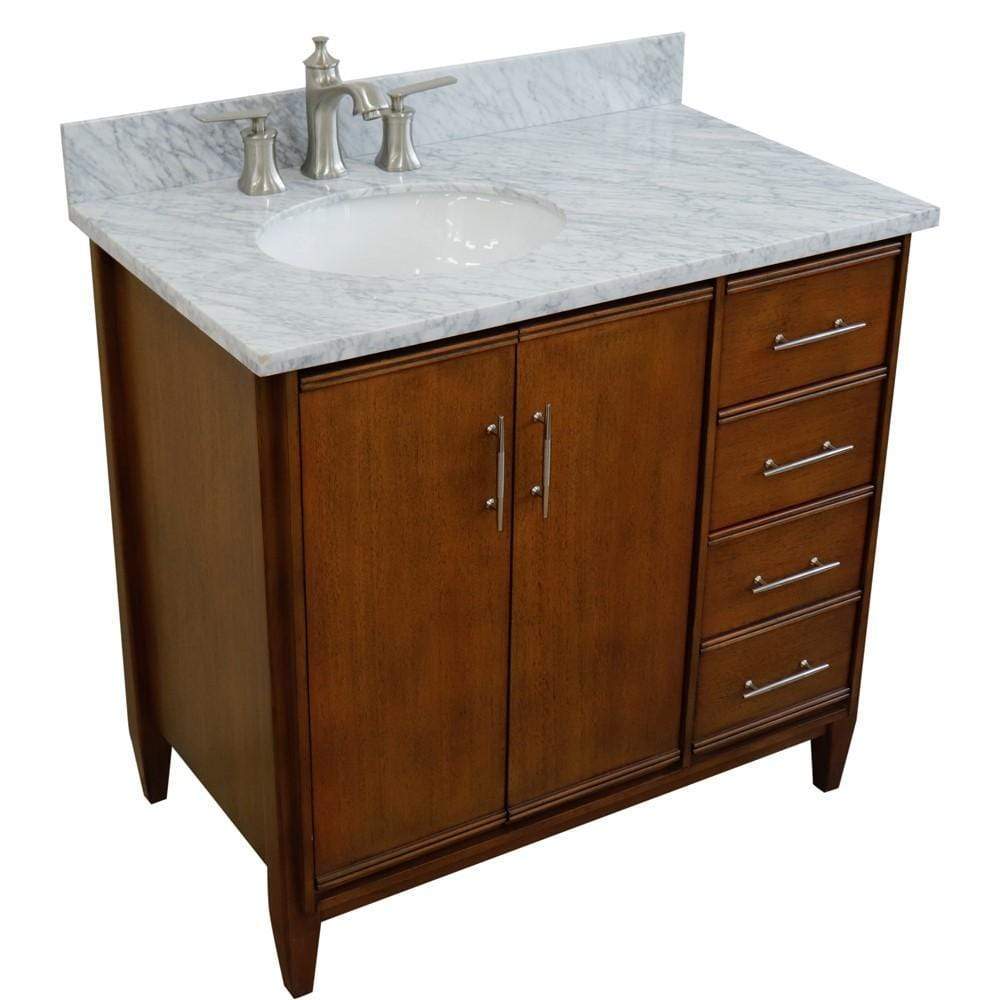 BellaTerra Home 37" Single vanity in Walnut finish with White Carrara and oval sink- Left door/Left sink 400901-37L-WA-WMOL