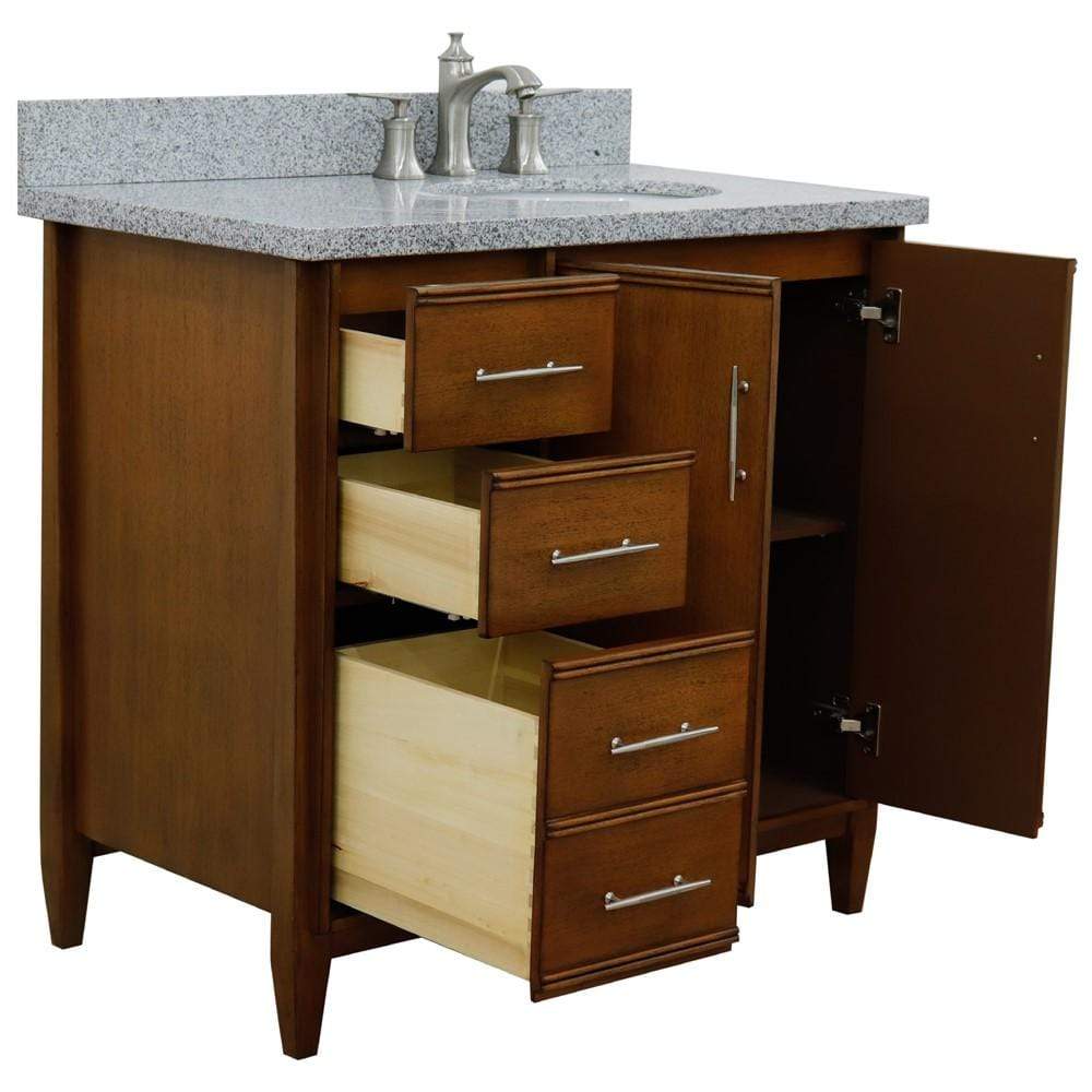 BellaTerra Home 37" Single vanity in Walnut finish with Gray granite and oval sink- Right door/Right sink 400901-37R-WA-GYOR