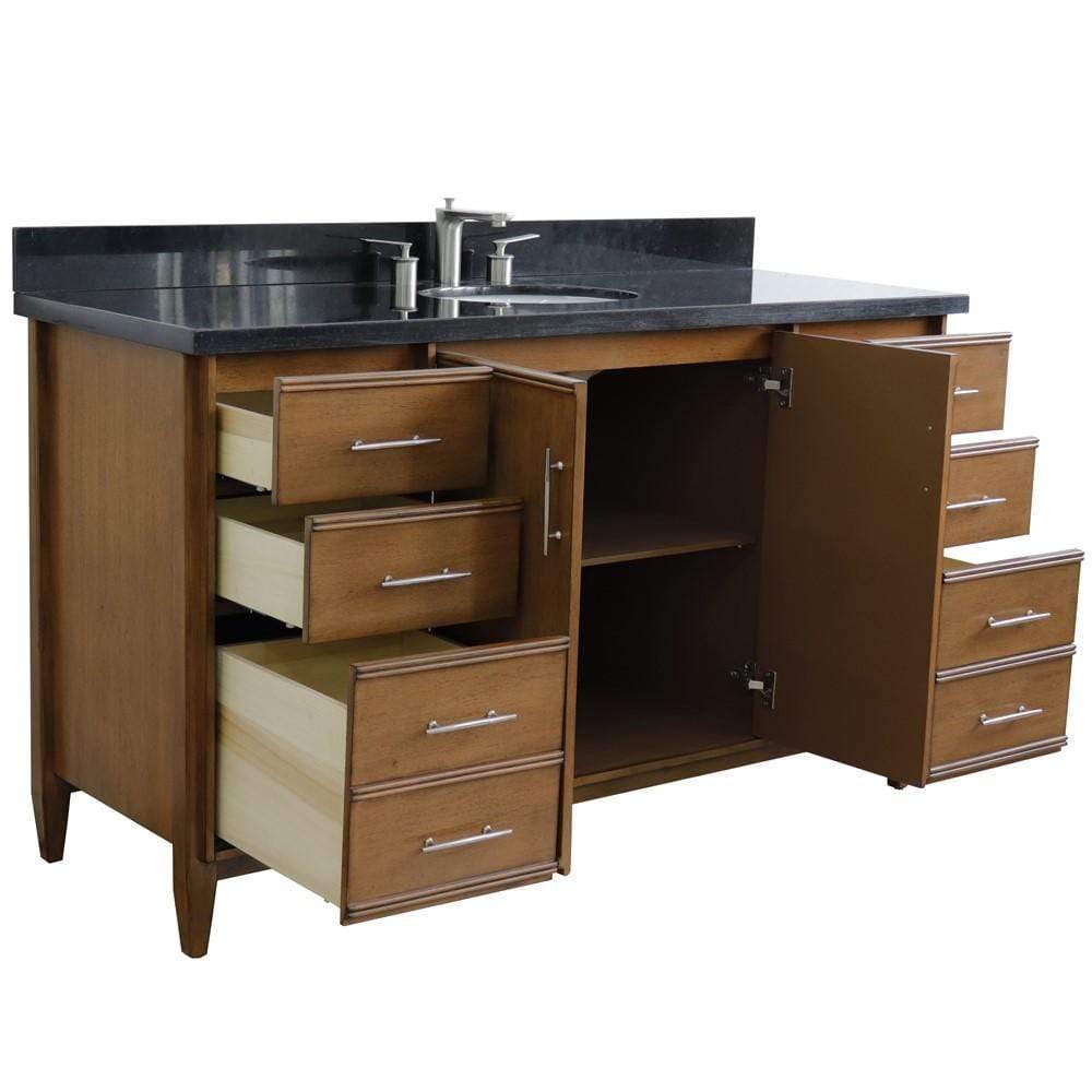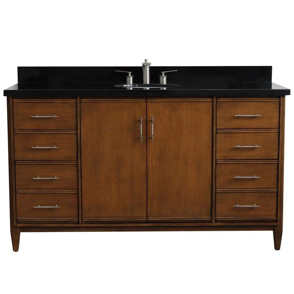 BellaTerra Home 61" Single sink vanity in Walnut finish with Black galaxy granite and oval sink 400901-61S-WA-BGO