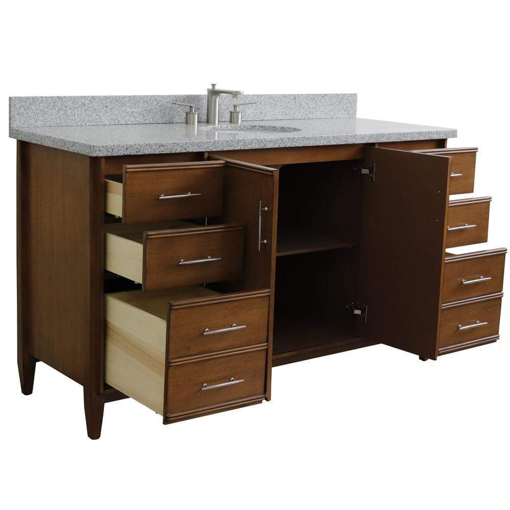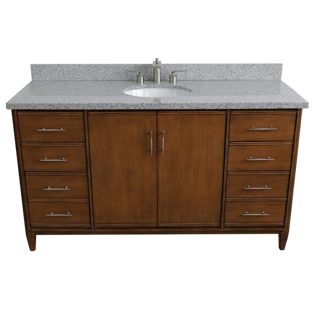 BellaTerra Home 61" Single sink vanity in Walnut finish with Gray granite and oval sink 400901-61S-WA-GYO
