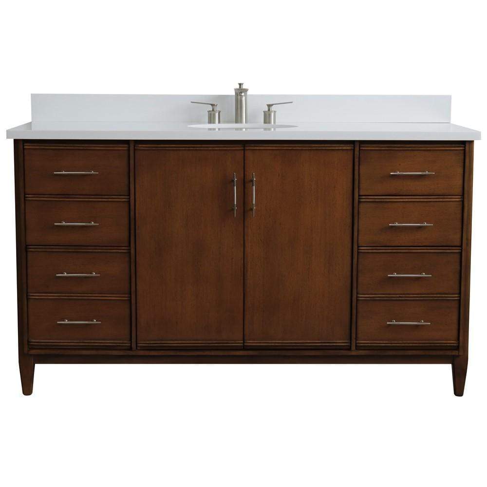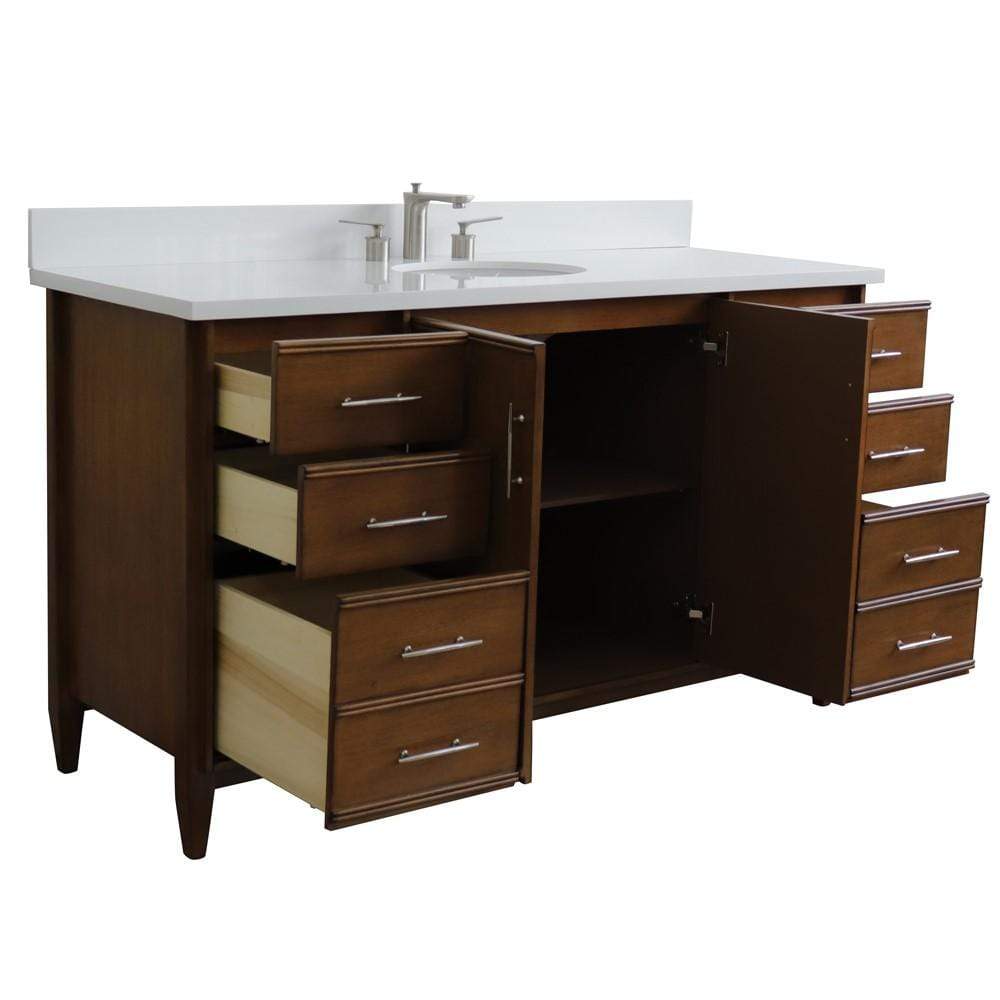BellaTerra Home 61" Single sink vanity in Walnut finish with White quartz and oval sink 400901-61S-WA-WEO