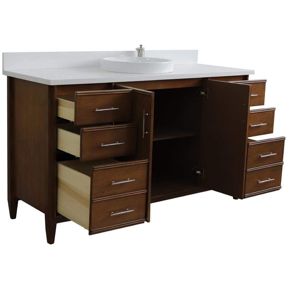 BellaTerra Home 61" Single sink vanity in Walnut finish with White quartz and round sink 400901-61S-WA-WERD