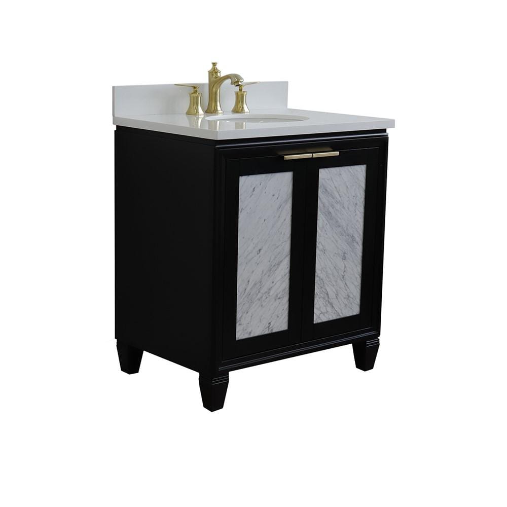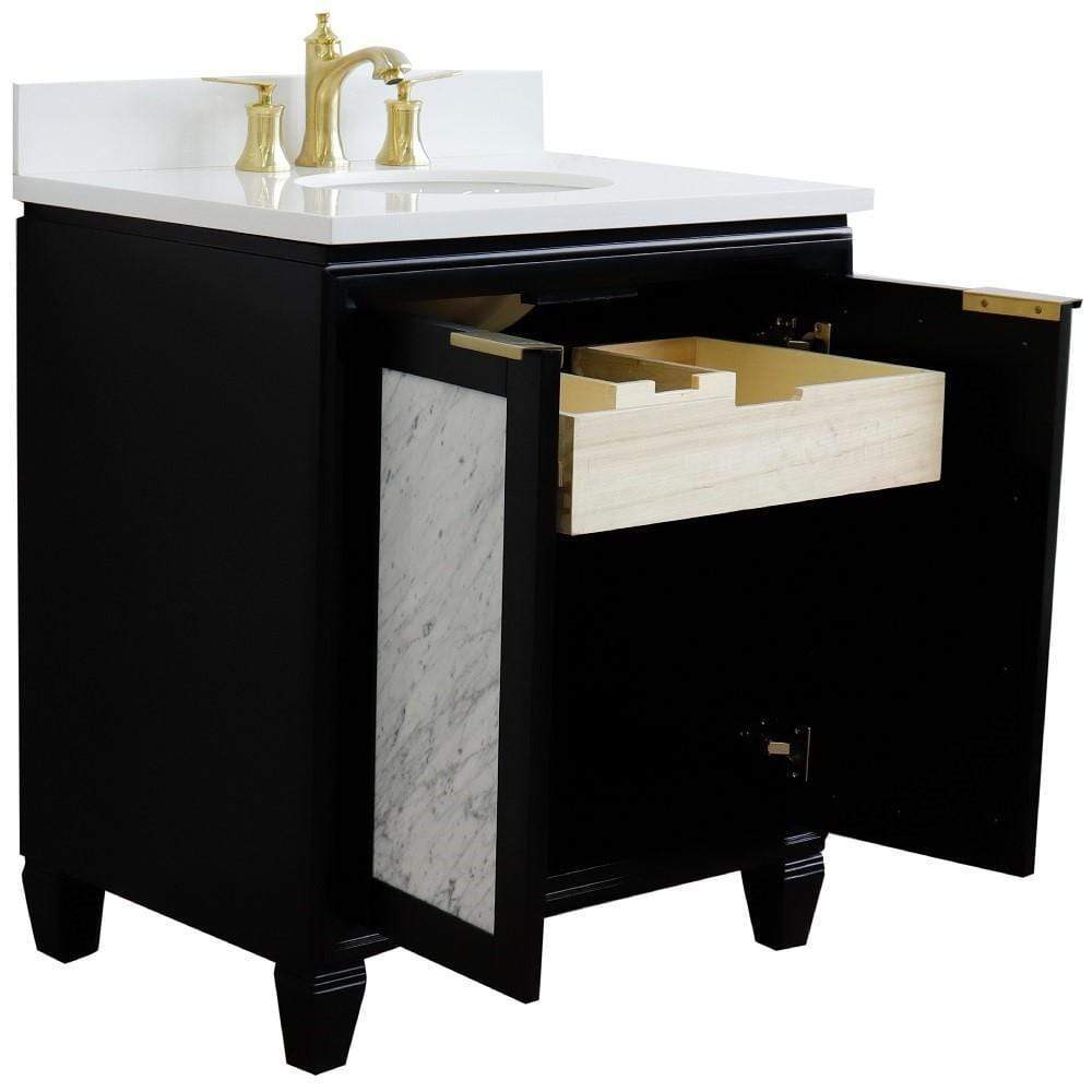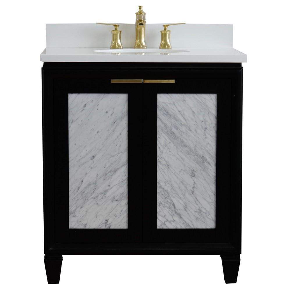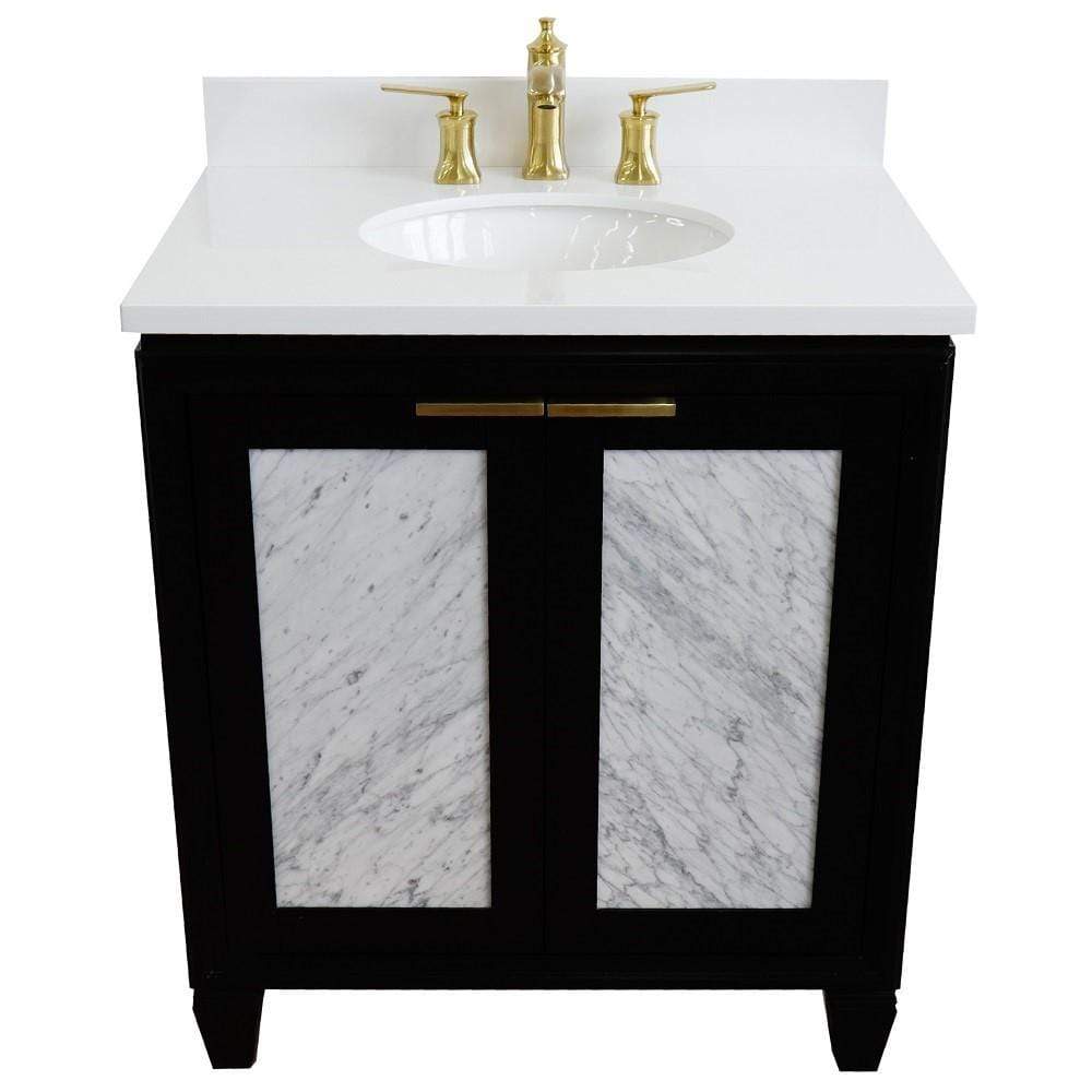BellaTerra Home 31" Single sink vanity in Black finish with White quartz with oval sink 400990-31-BL-WEO