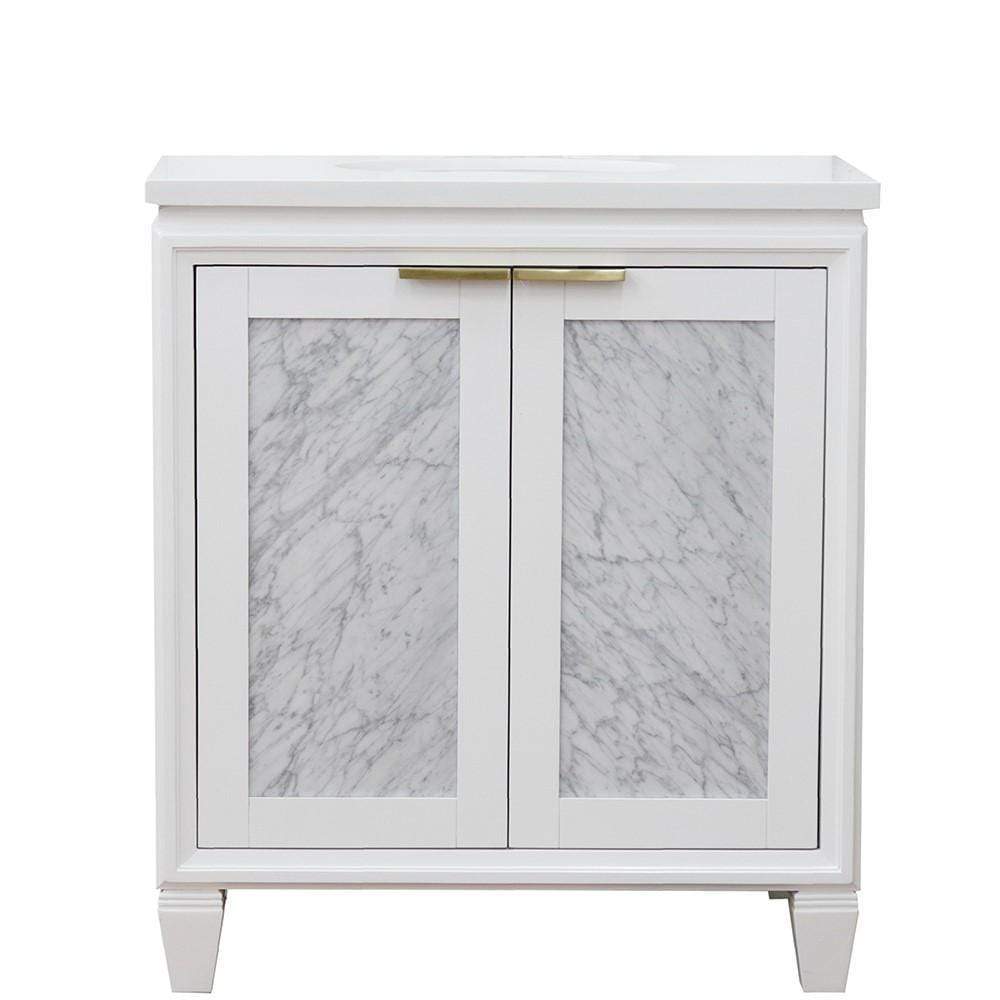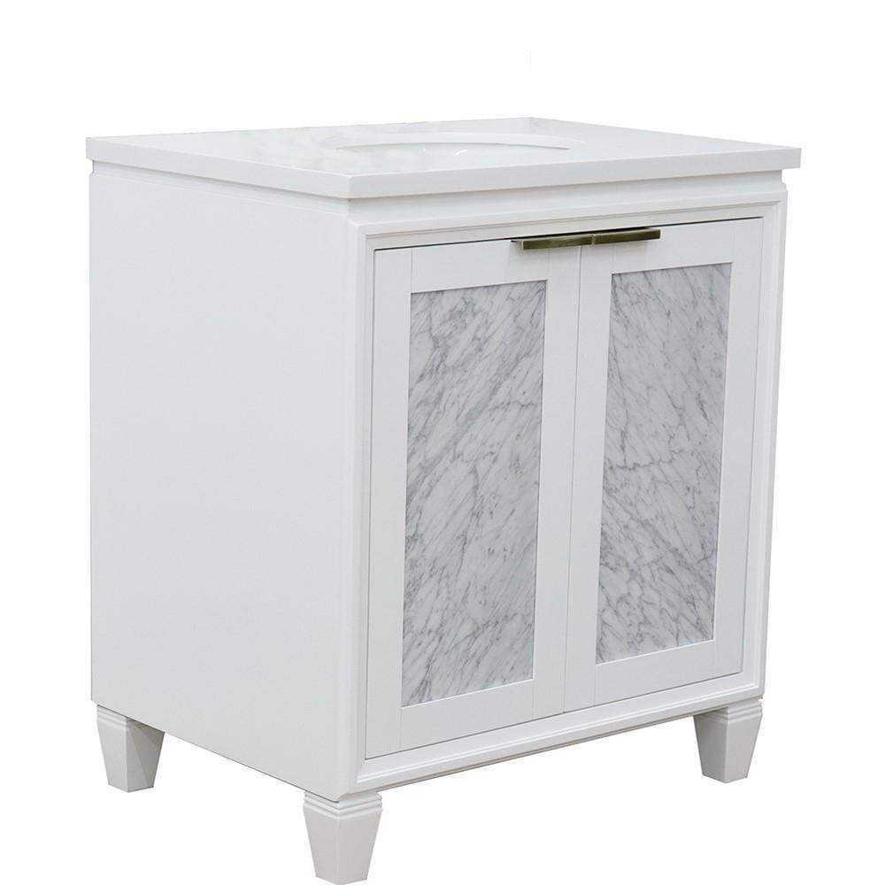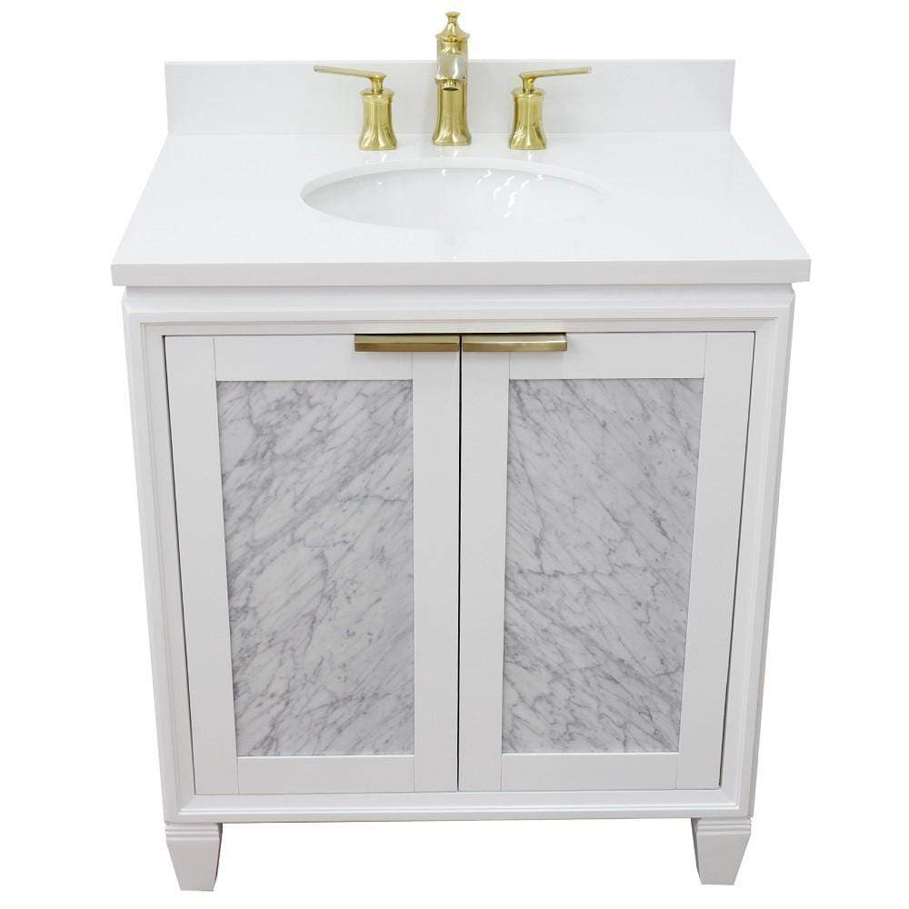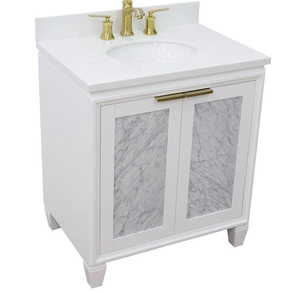 BellaTerra Home 31" Single sink vanity in White finish with White quartz with oval sink 400990-31-WH-WEO