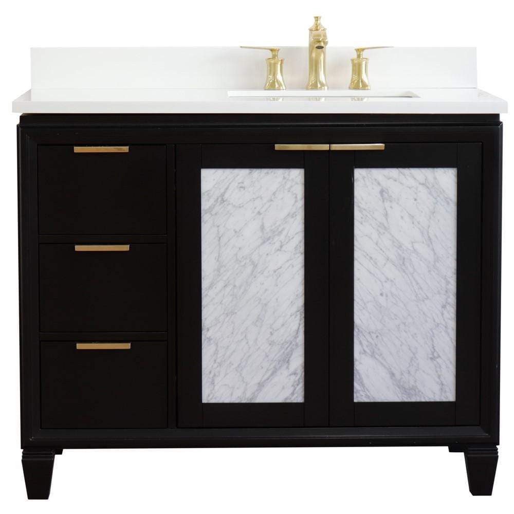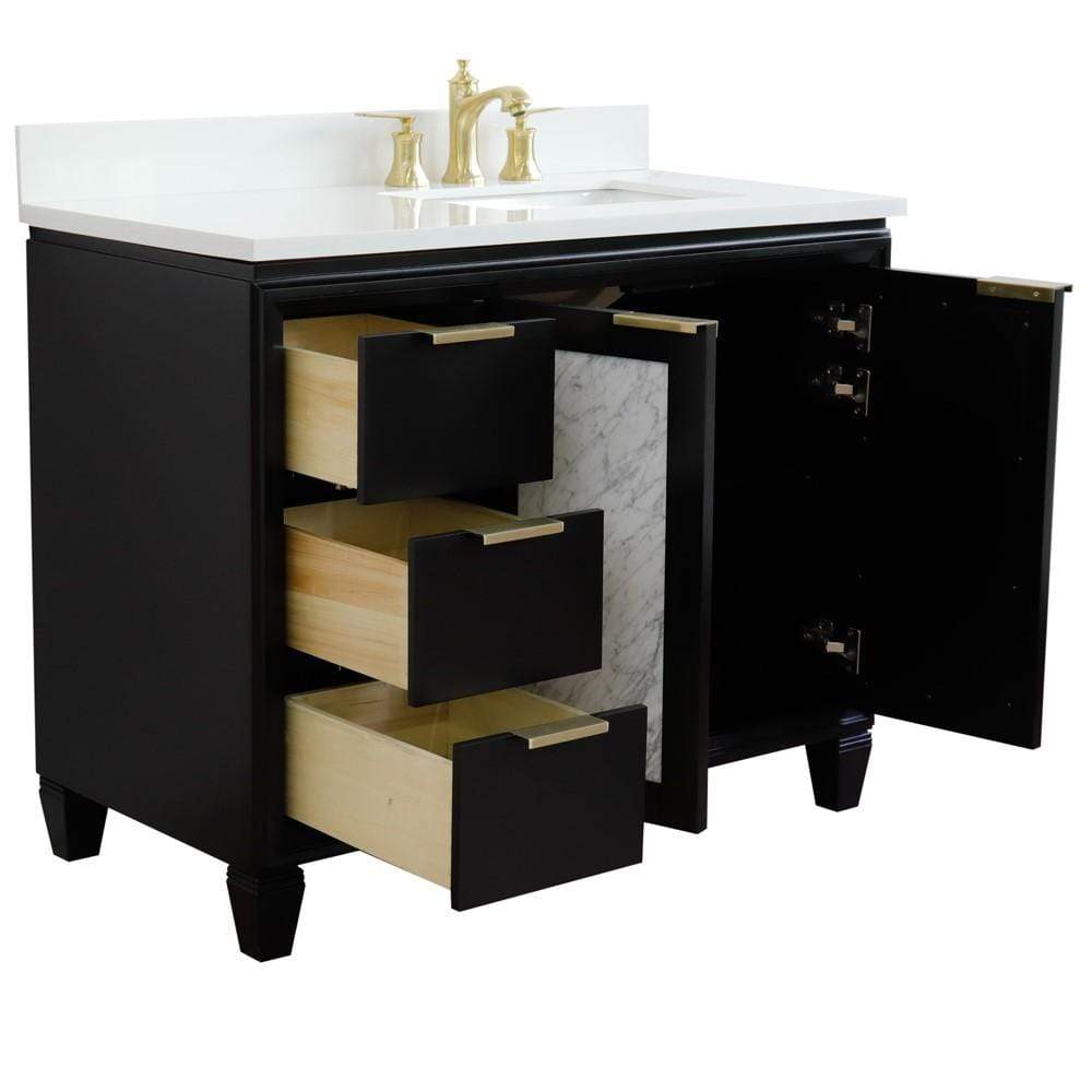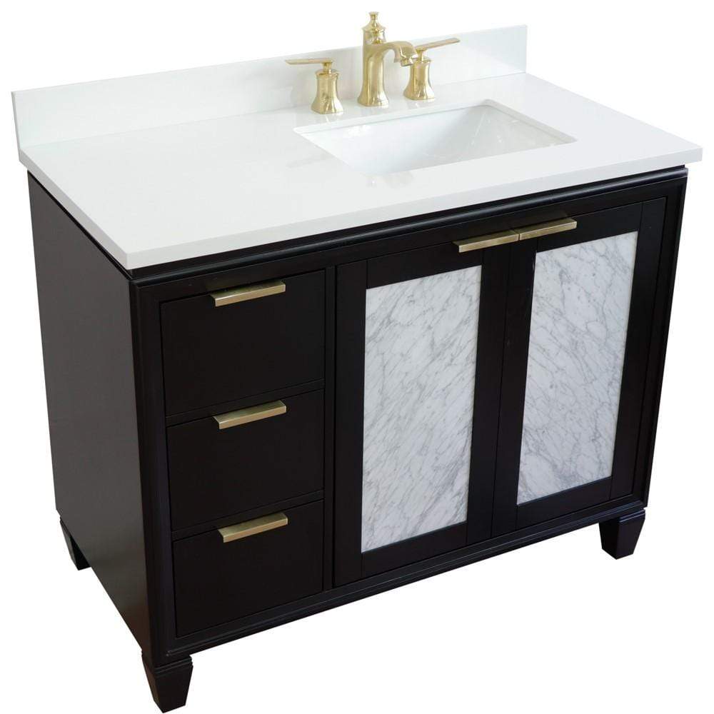 BellaTerra Home 43" Single vanity in Black finish with White quartz and rectangle sink- Right door/Right sink 400990-43R-BL-WERR