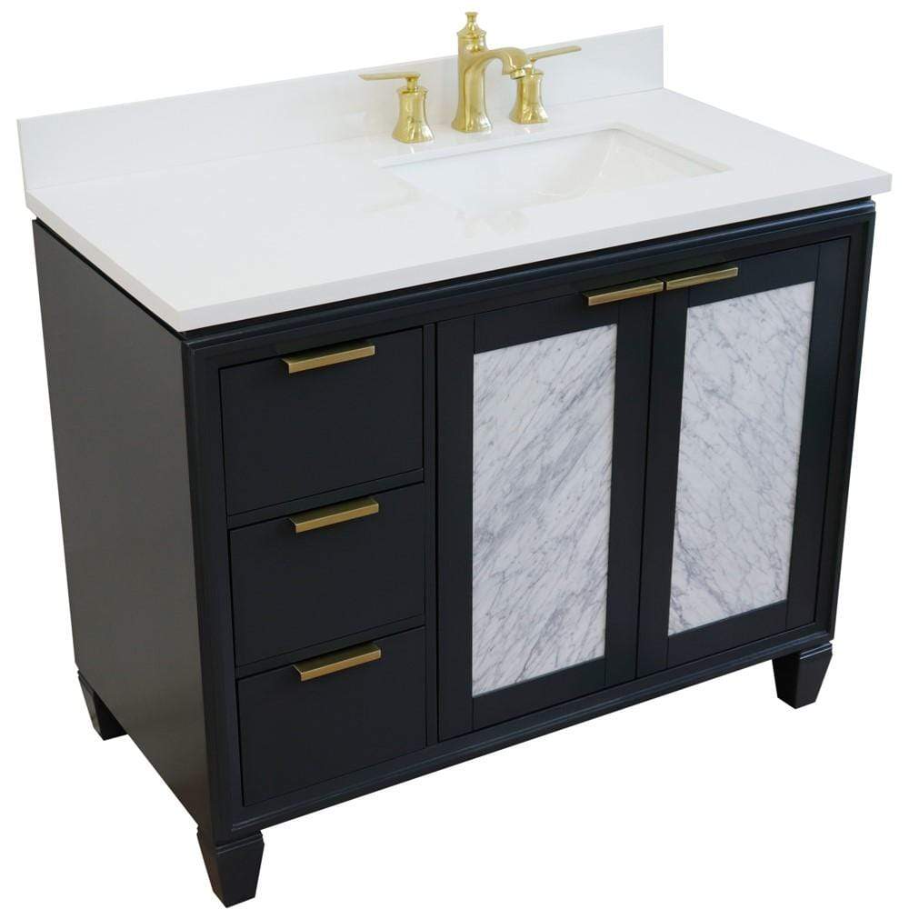 BellaTerra Home 43" Single vanity in Dark Gray finish with White quartz and rectangle sink- Right door/Right sink 400990-43R-DG-WERR