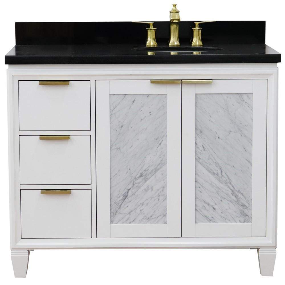BellaTerra Home 43" Single vanity in White finish with Black galaxy and oval sink- Right door/Right sink 400990-43R-WH-BGOR