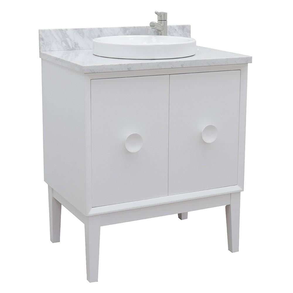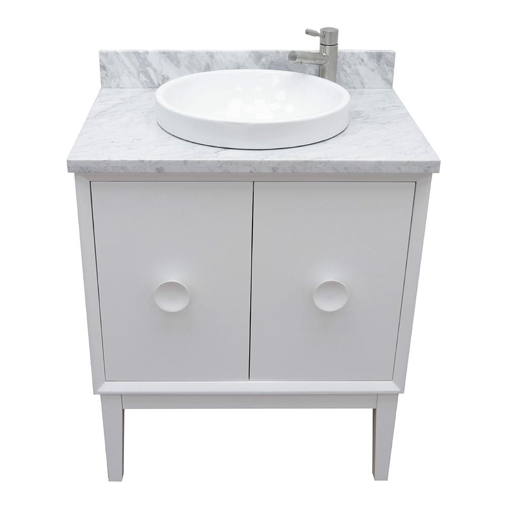 BellaTerra Home 31" Single vanity in White finish with White Carrara top and Round Sink 400400-WH-WMRD
