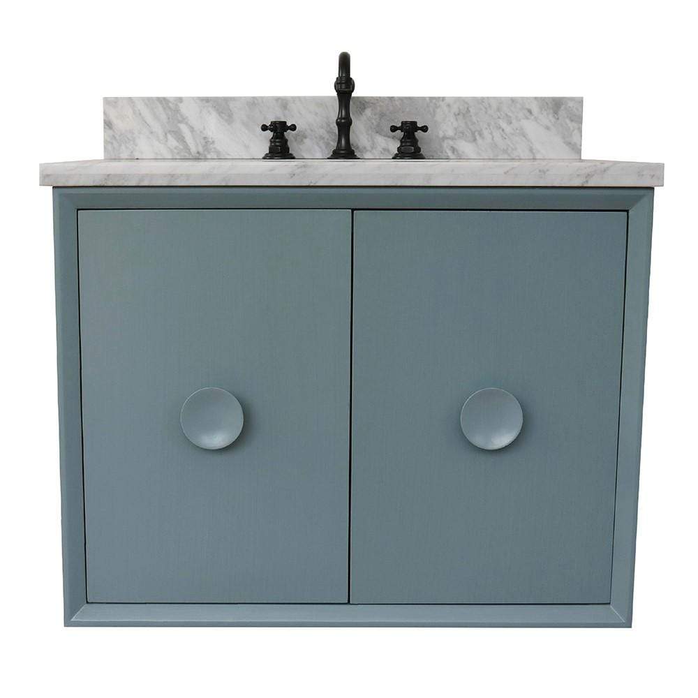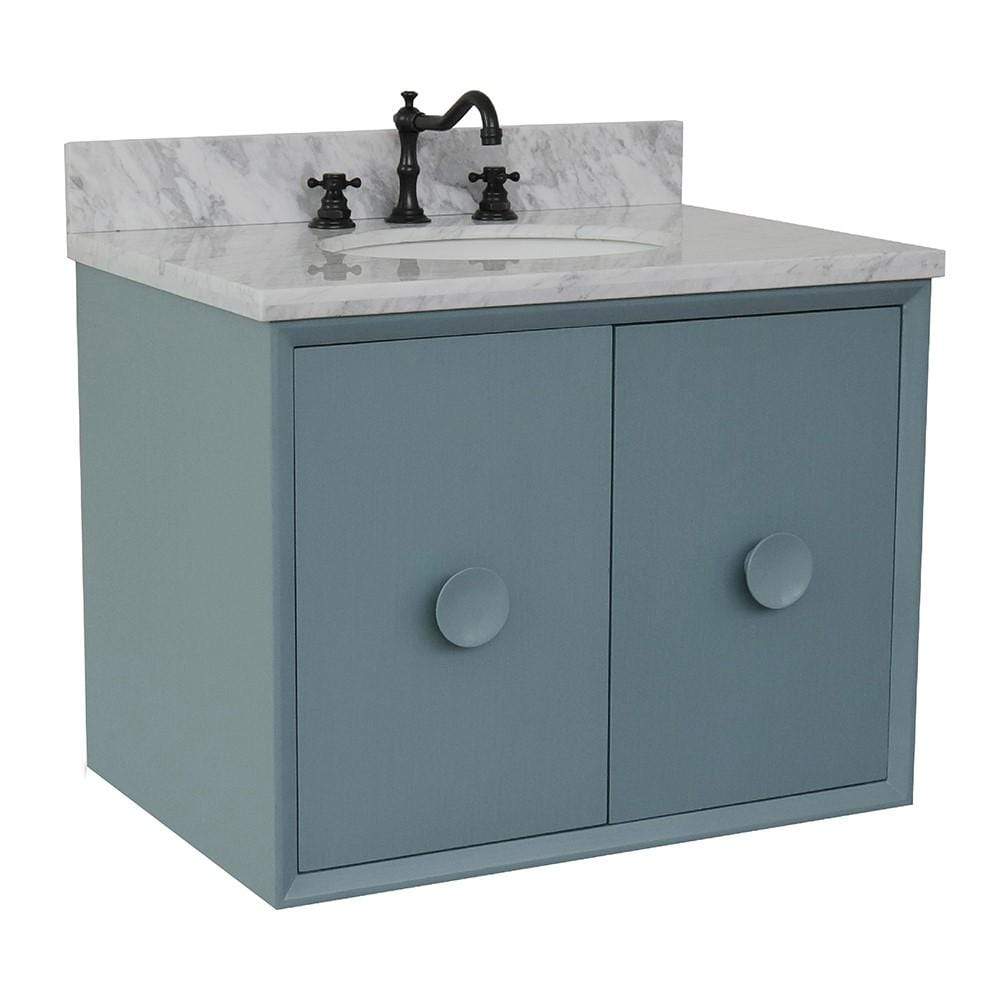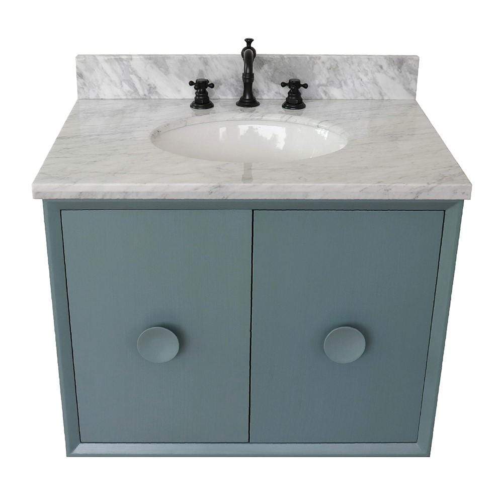 BellaTerra Home 31" Single wall mount vanity in Aqua Blue finish with White Carrara top and Oval Sink 400400-CAB-AB-WMO