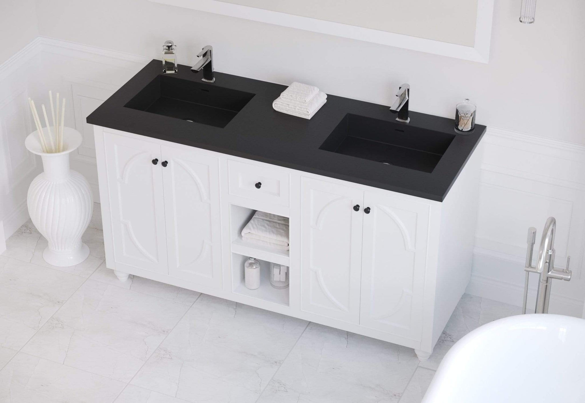 LAVIVA 313613-60W-MB Odyssey - 60 - White Cabinet + Matte Black VIVA Stone Solid Surface Countertop