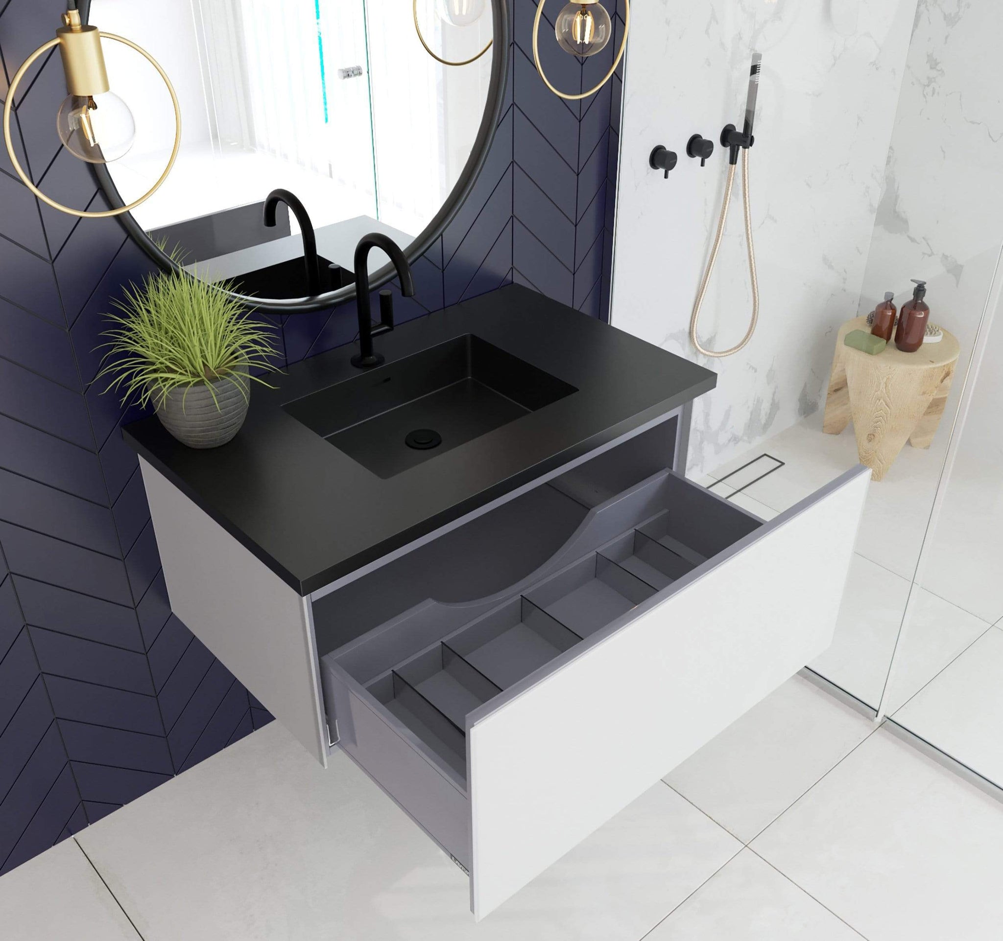LAVIVA 313VTR-36CW-MB Vitri 36 - Cloud White Cabinet + Matte Black VIVA Stone Solid Surface Countertop