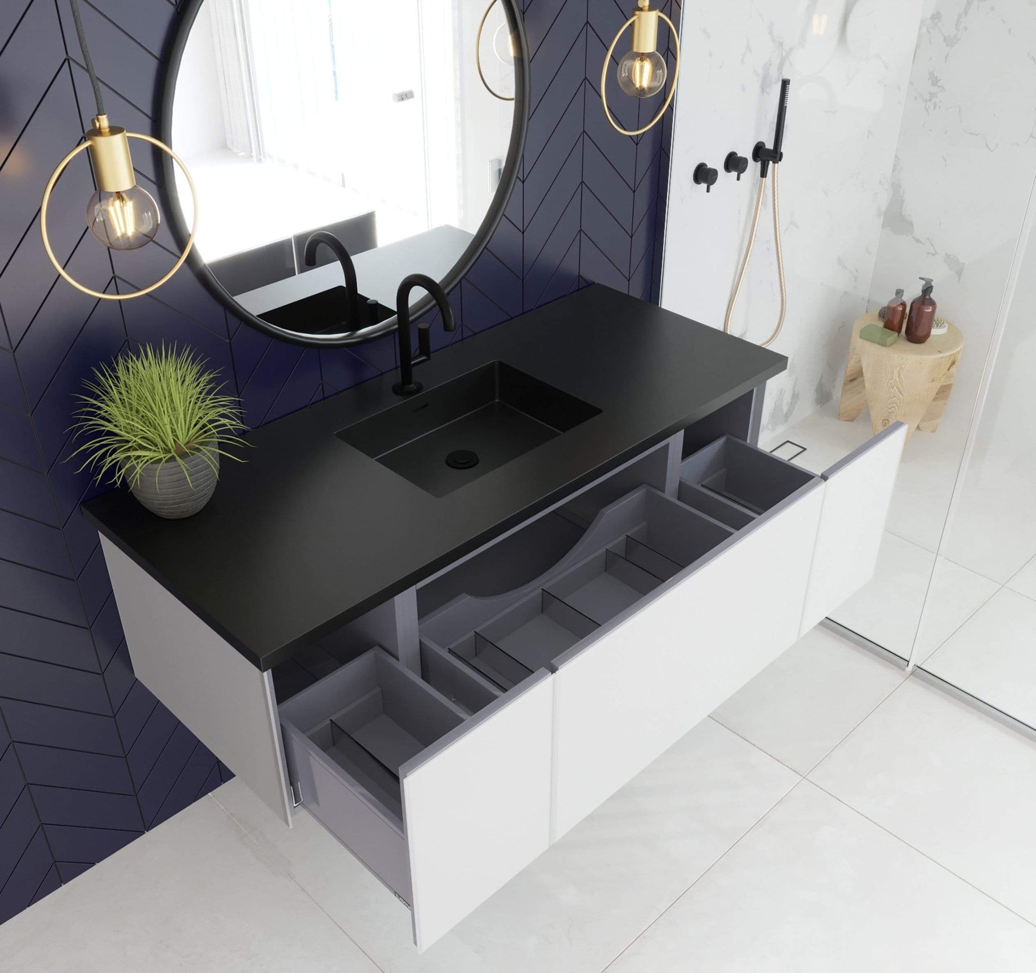 LAVIVA 313VTR-54CW-MB Vitri 54 - Cloud White Cabinet + Matte Black VIVA Stone Solid Surface Countertop