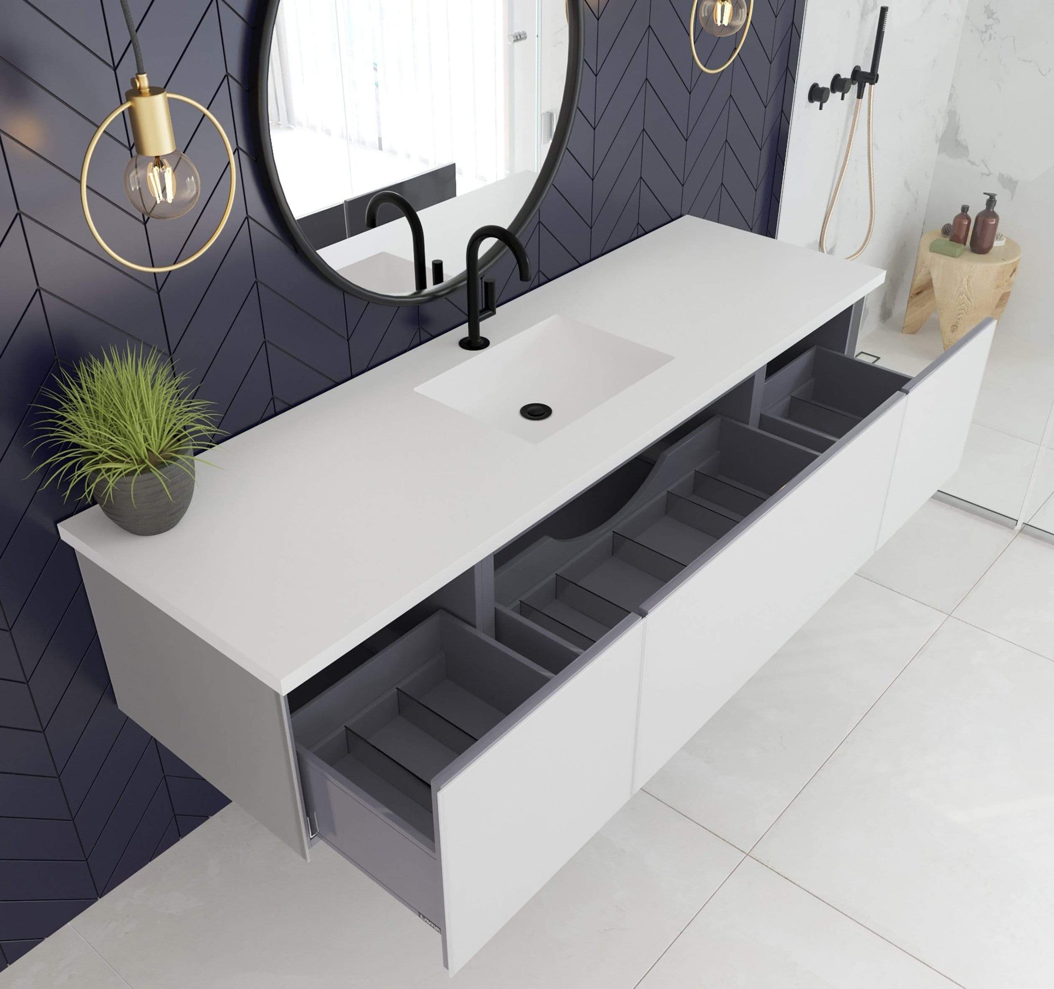 LAVIVA 313VTR-72CCW-MW Vitri 72 - Cloud White Single Sink Cabinet + Matte White VIVA Stone Solid Surface Center Sink Countertop