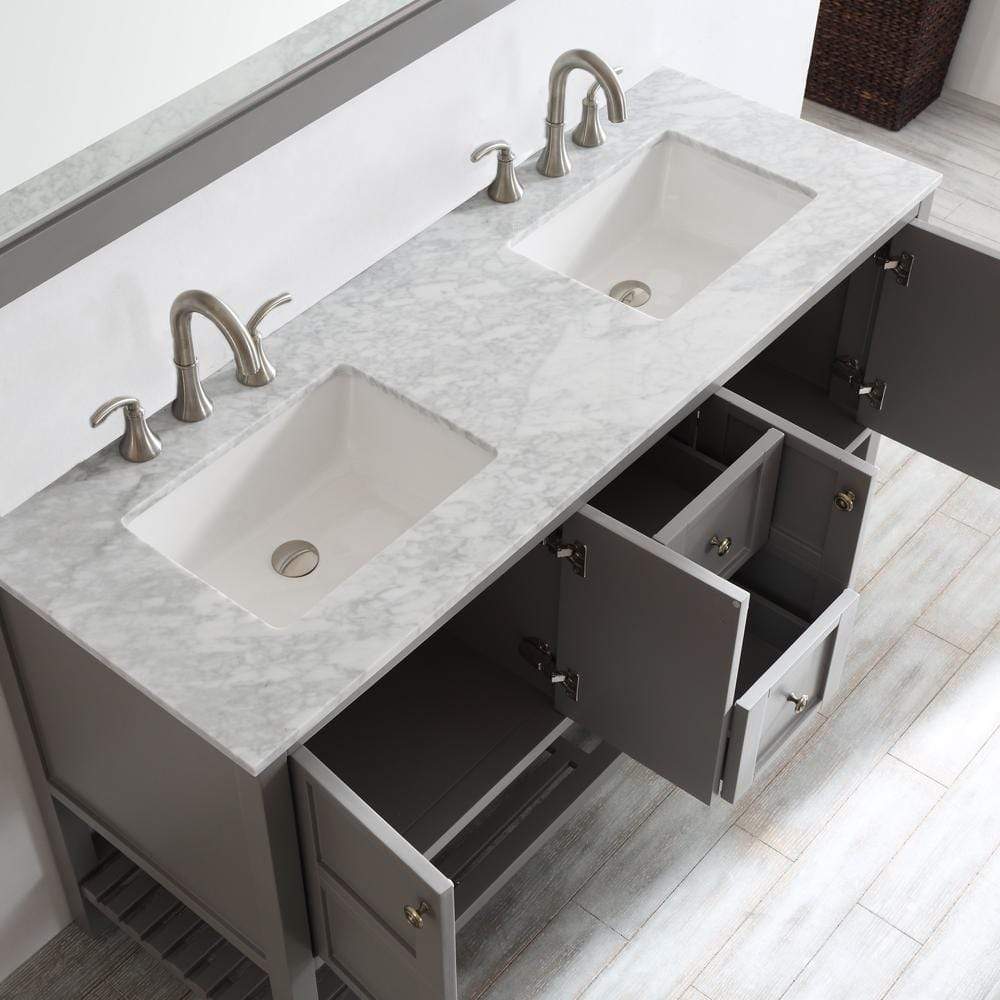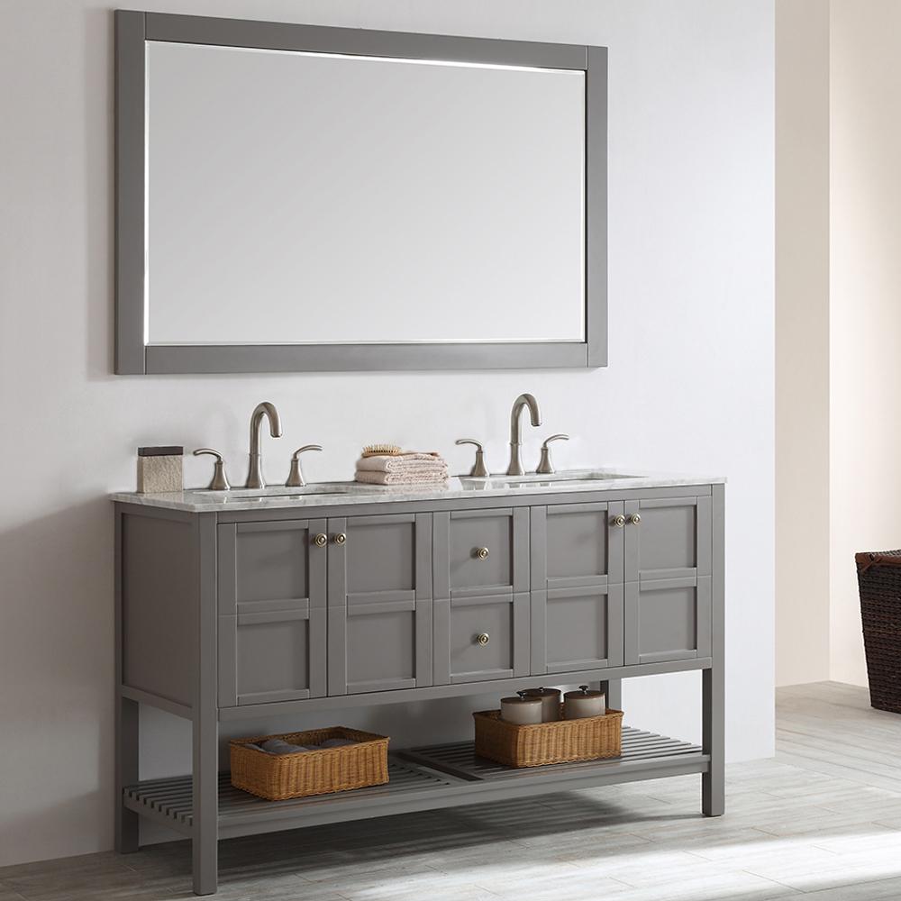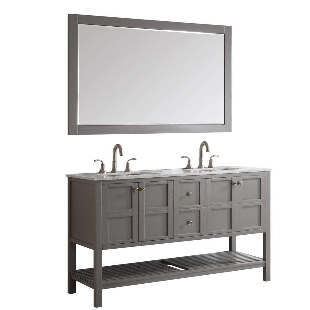 Vinnova Florence 60" Double Vanity in Grey with Carrara White Marble Countertop With Mirror 713060-GR-CA