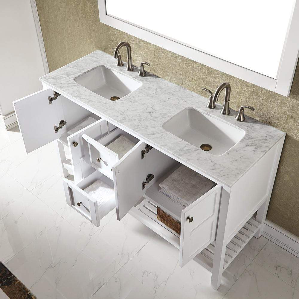 Vinnova Florence 60" Vanity in White with Carrara White Marble Countertop With Mirror 713060-WH-CA