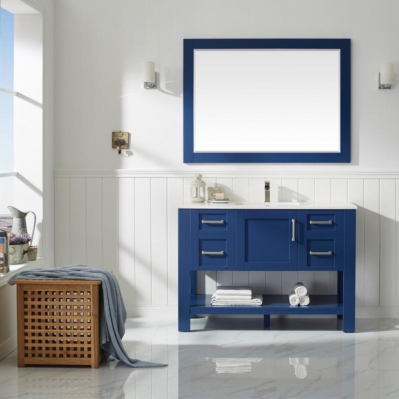 Vinnova Grayson 48" Single Vanity in Jewelry Blue and Composite Carrara White Stone Countertop With Mirror 784048-JB-WS