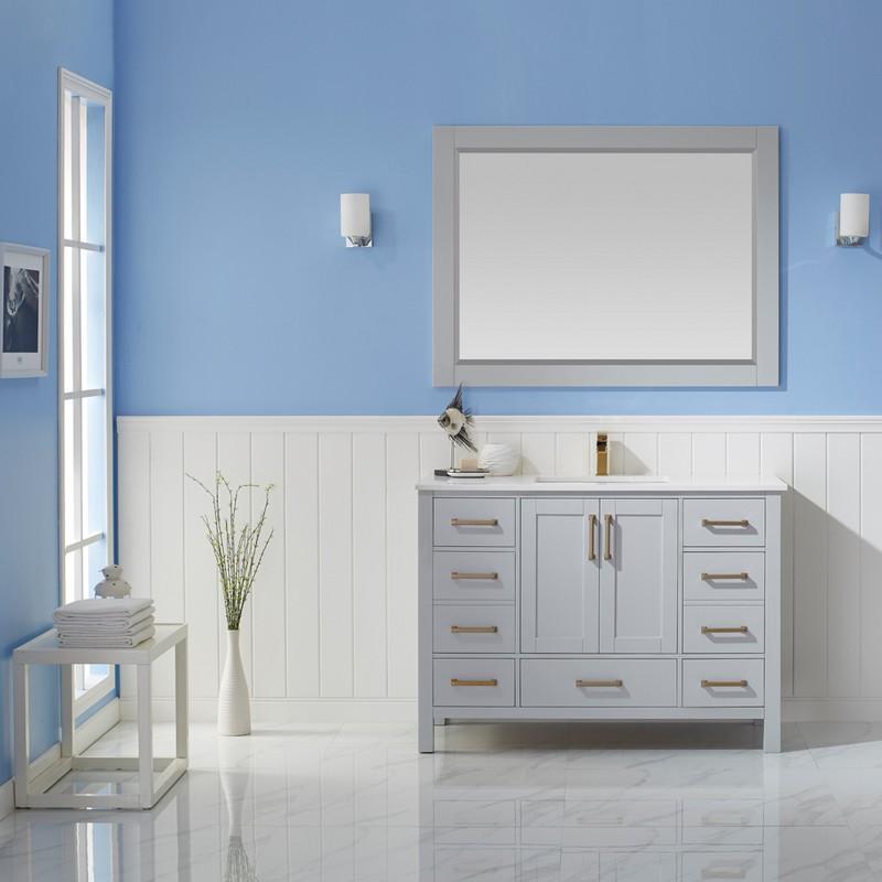 Vinnova Shannon 48" Single Vanity in Paris Grey and Composite Carrara White Stone Countertop With Mirror 785048-PG-WS
