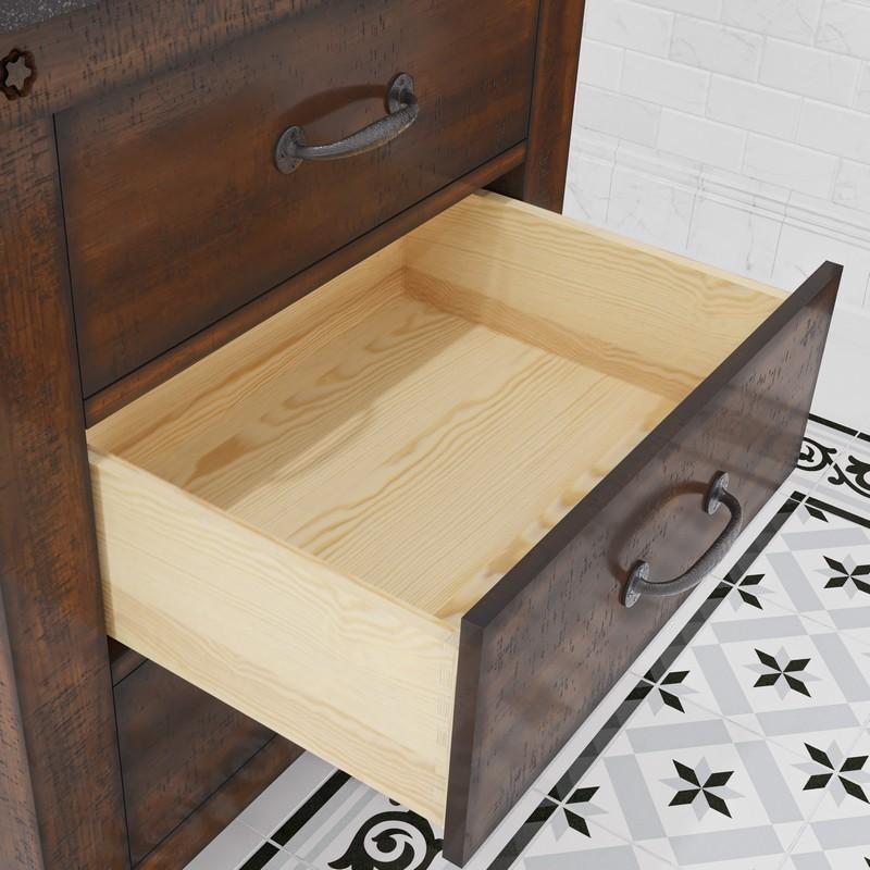 Utilizing your bathroom doesn’t have to be a big deal. In our Aberdeen collection, you’ll have the sophistication of your bathroom on style and space efficiency. Incorporated with superior craftsmanship, the X-Panels on both sides of the vanity are the epitome of the modern farmhouse scheme. With the choices of Grizzle Gray and Rustic Sierra color, this barn-style vanities’ rustic aesthetic includes a spacious cabinet blended with antique wrought iron handles. Whichever you choose a Blue Limestone or Carrara White Marble countertop really makes a hit. Together with large doors and multiple functional drawers, this vanity offers ample storage while being stylish and unique. Combined with integrated ceramics sink and elegantly crafted door and the drawer all lend credence to the durability and superior craftsmanship which last a lifetime.