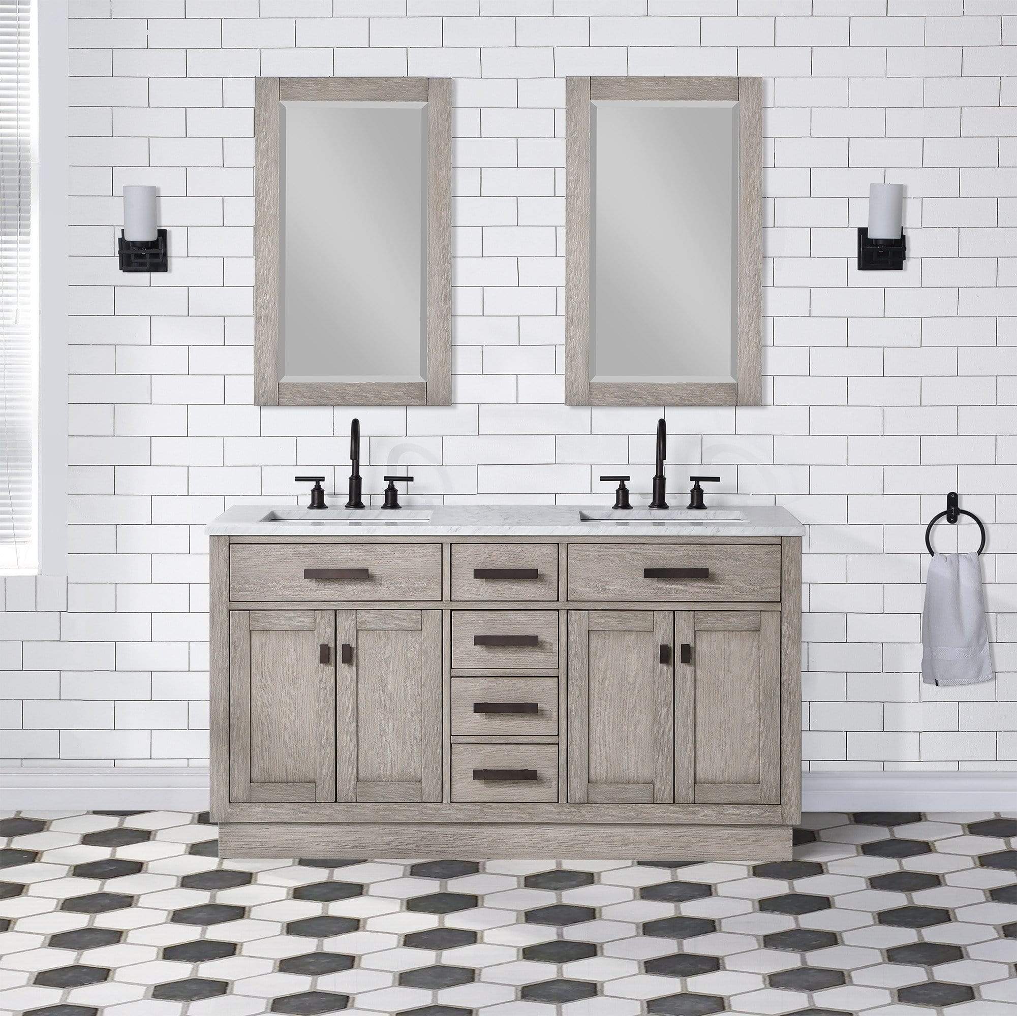 Water Creation CH60A-0300GK Chestnut 60 Inch Double Bathroom Vanity in Grey Oak